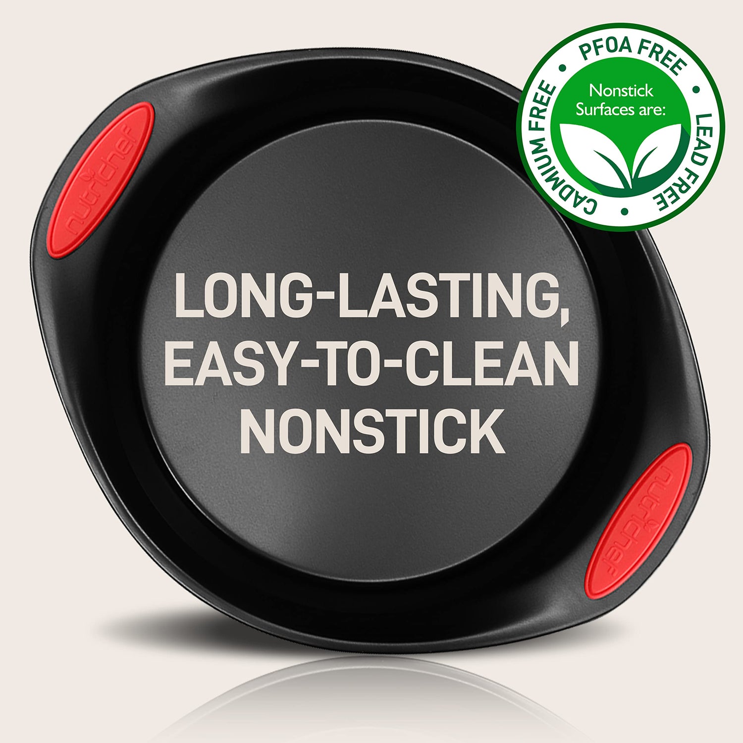 - HEATPROOF SILICONE HANDLES: Featuring commercial-grade red silicone handles, this bakeware prevents burns and offers a secure grip. It is stain-resistant, easy to clean, and dishwasher safe, though hand washing is recommended to extend pan life.