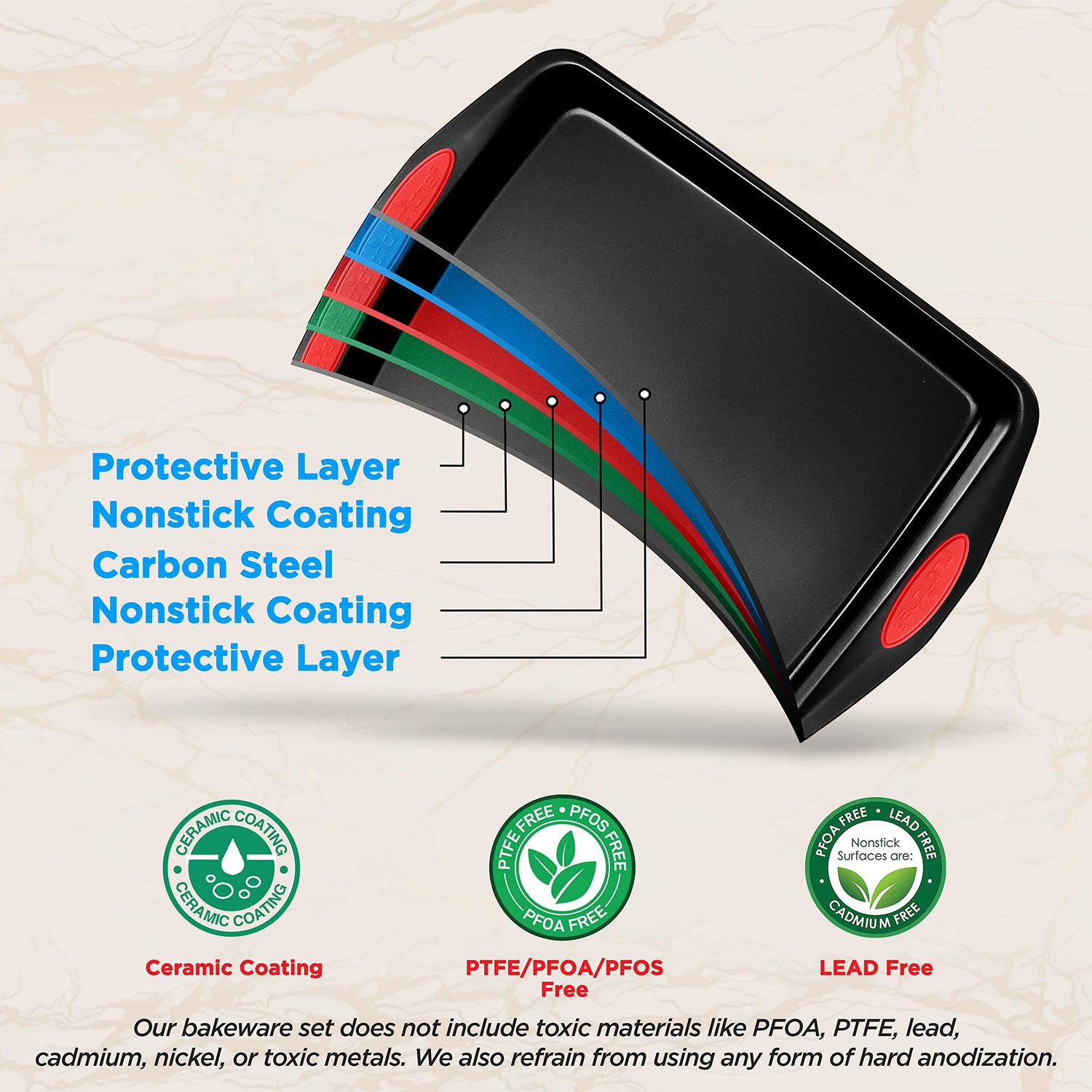 - NON-STICK COATING: Made from durable carbon steel metal with a non-stick coating, this bakeware eliminates the need for butter, oil, or cooking spray, ensuring quick and effortless food release. Plus, it does not emit any strange odors.