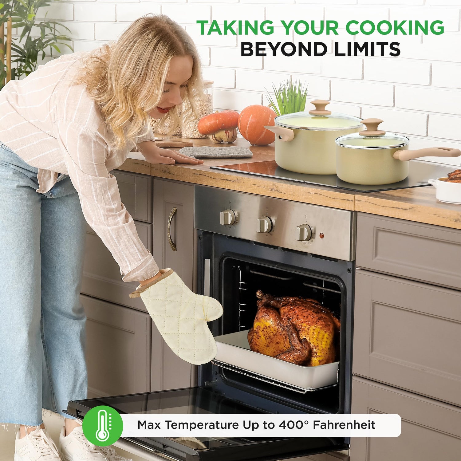 - USER-FRIENDLY DESIGN - Embrace eco-conscious cooking with our food-grade, user-friendly kitchenware. This nonstick pots and pans set is thoughtfully constructed for use on gas, electric, ceramic, and induction (excluding the small egg pan and milk pot) cooktops.