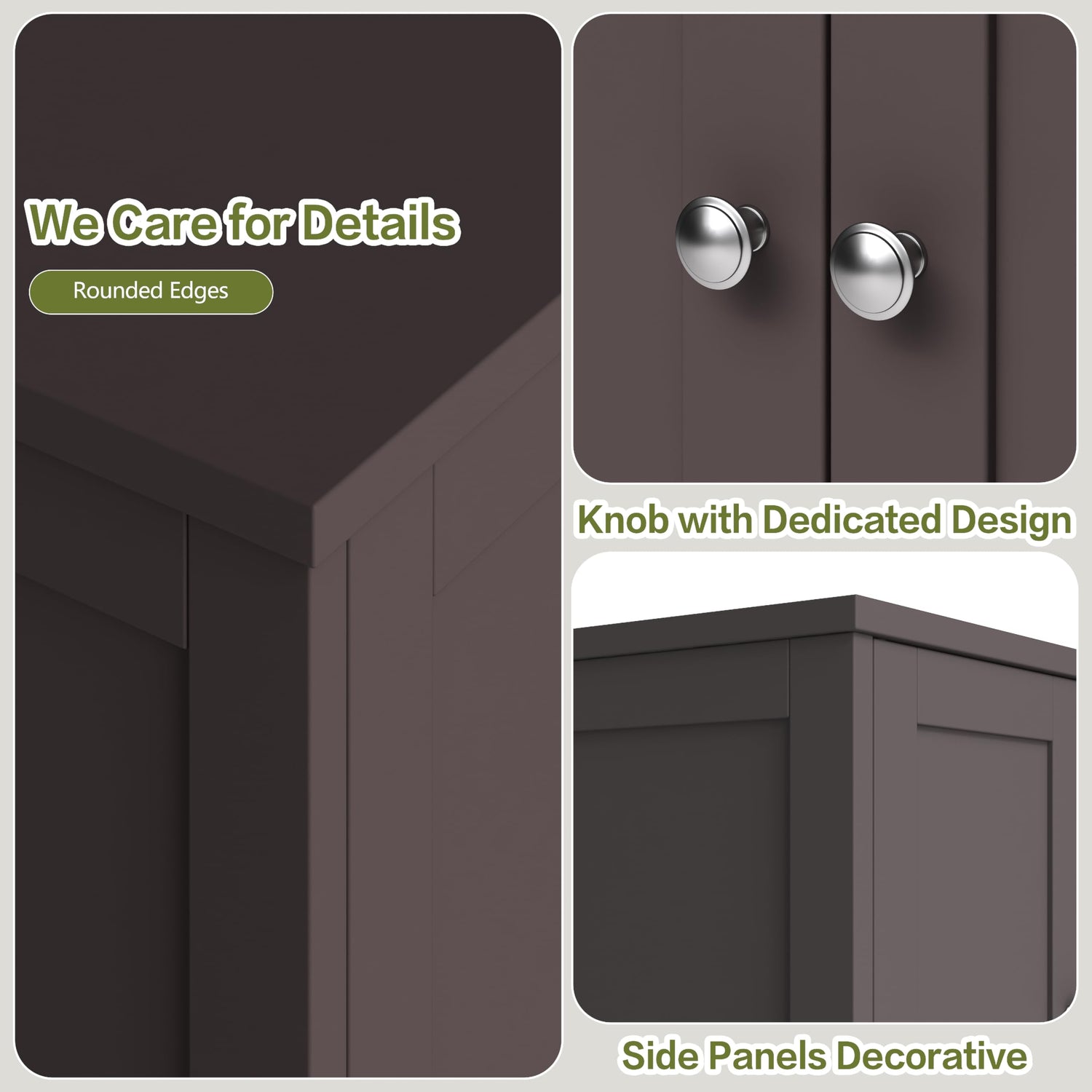 Nuturelly Bathroom Floor Storage Cabinet, Freestanding Pantry Cabinets with 4 Doors & 3 Adjustable Heights, Bathroom Organizers and Storage with Waterproof Board & Metal Handles for Kitchen, Brown