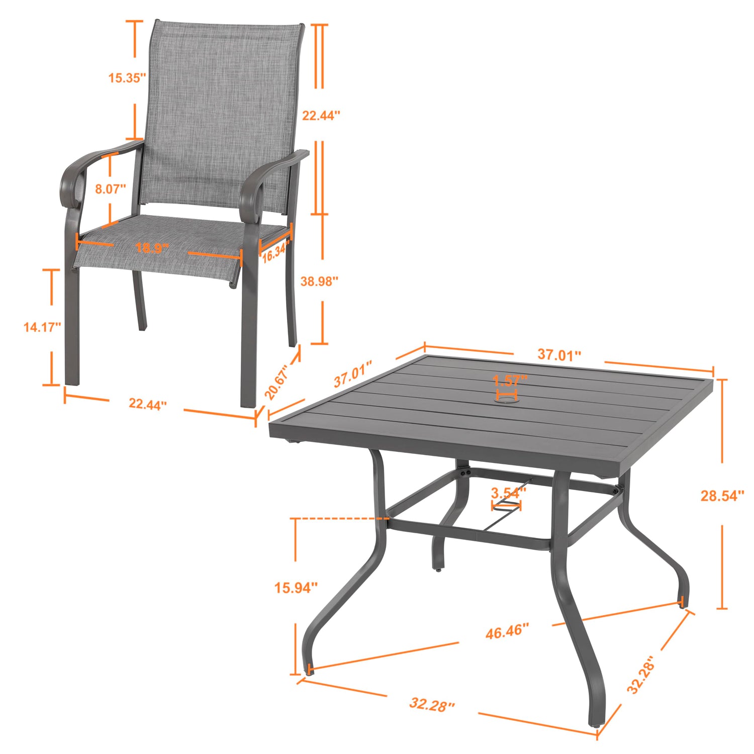 - TEXTILENE FABRIC: The backrests and seats of the patio dining table and patio dining chairs are made of breathable Textilene fabric, which is quick dry, fade, and anti-UV, providing a better sitting experience