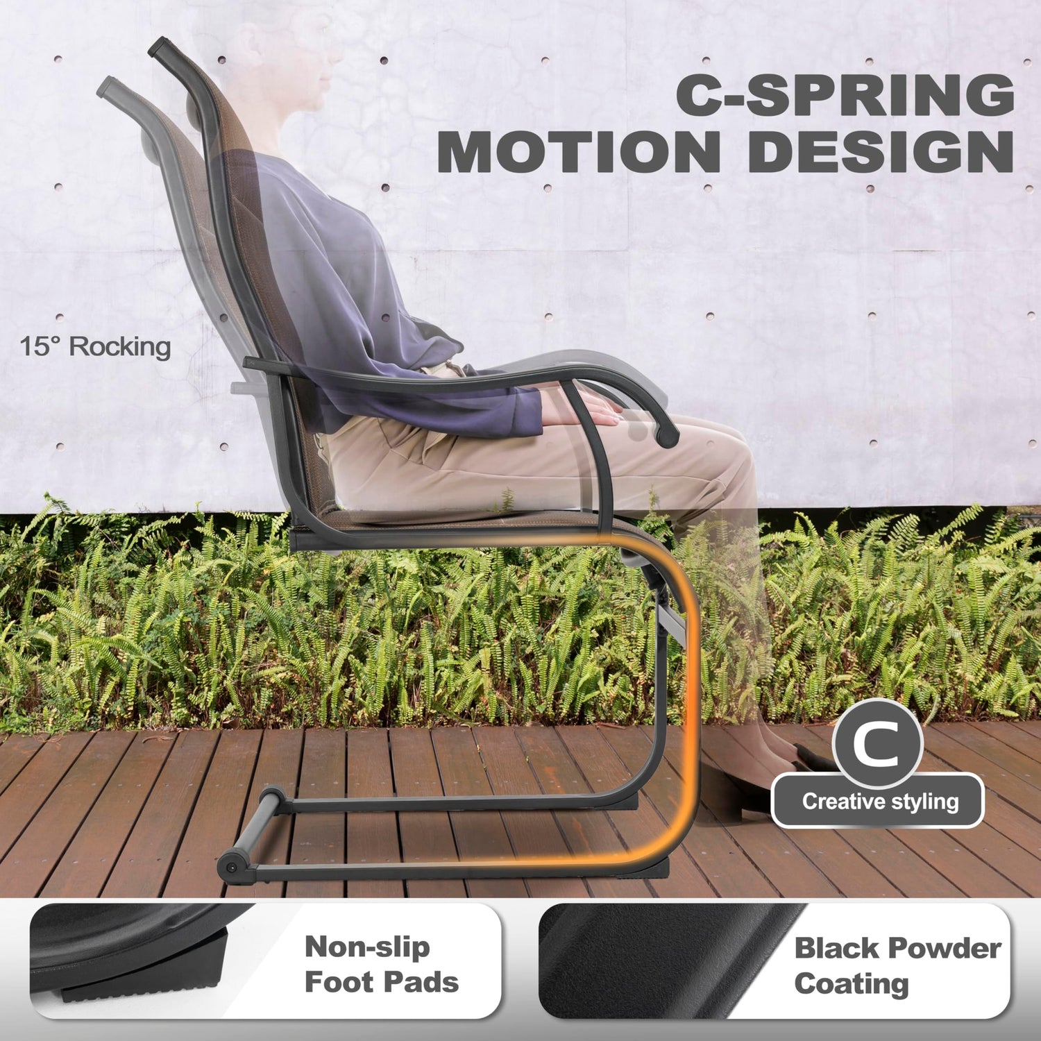 - C-TYPE SPRING MOTION: The C-type patio chairs legs ingeniously uses the principle of spring, which is designed to create a subtle rocking motion, adding extra relaxation of this rocker patio chairs, which enhances your overall enjoyment