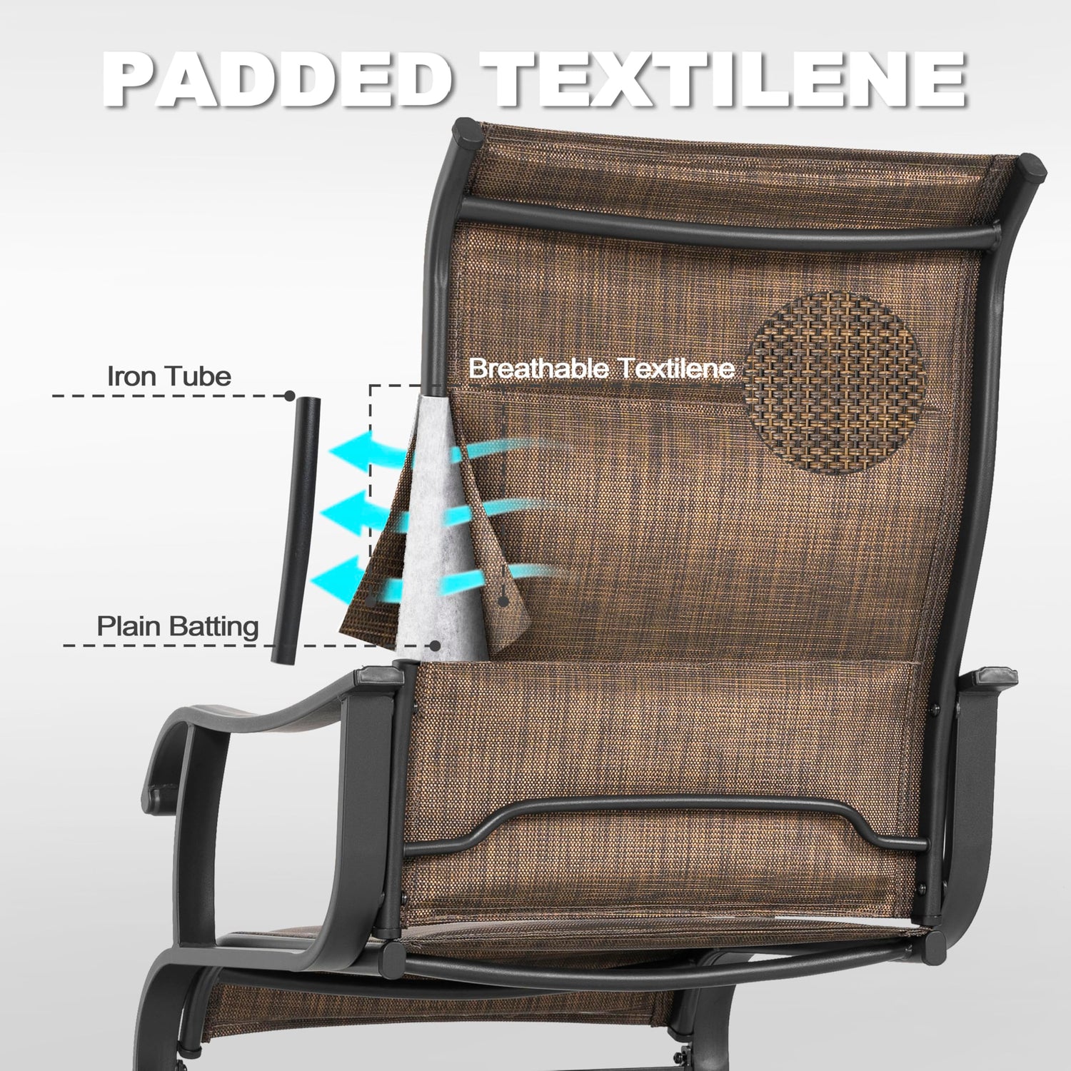 NUU GARDEN Patio Dining Chairs Set of 4, All Weather Outdoor Padded Textilene Patio Chairs, Breathable Spring Motion Textile High Back Outdoor Dining Chairs for Backyard, Lawn, Deck, Brown