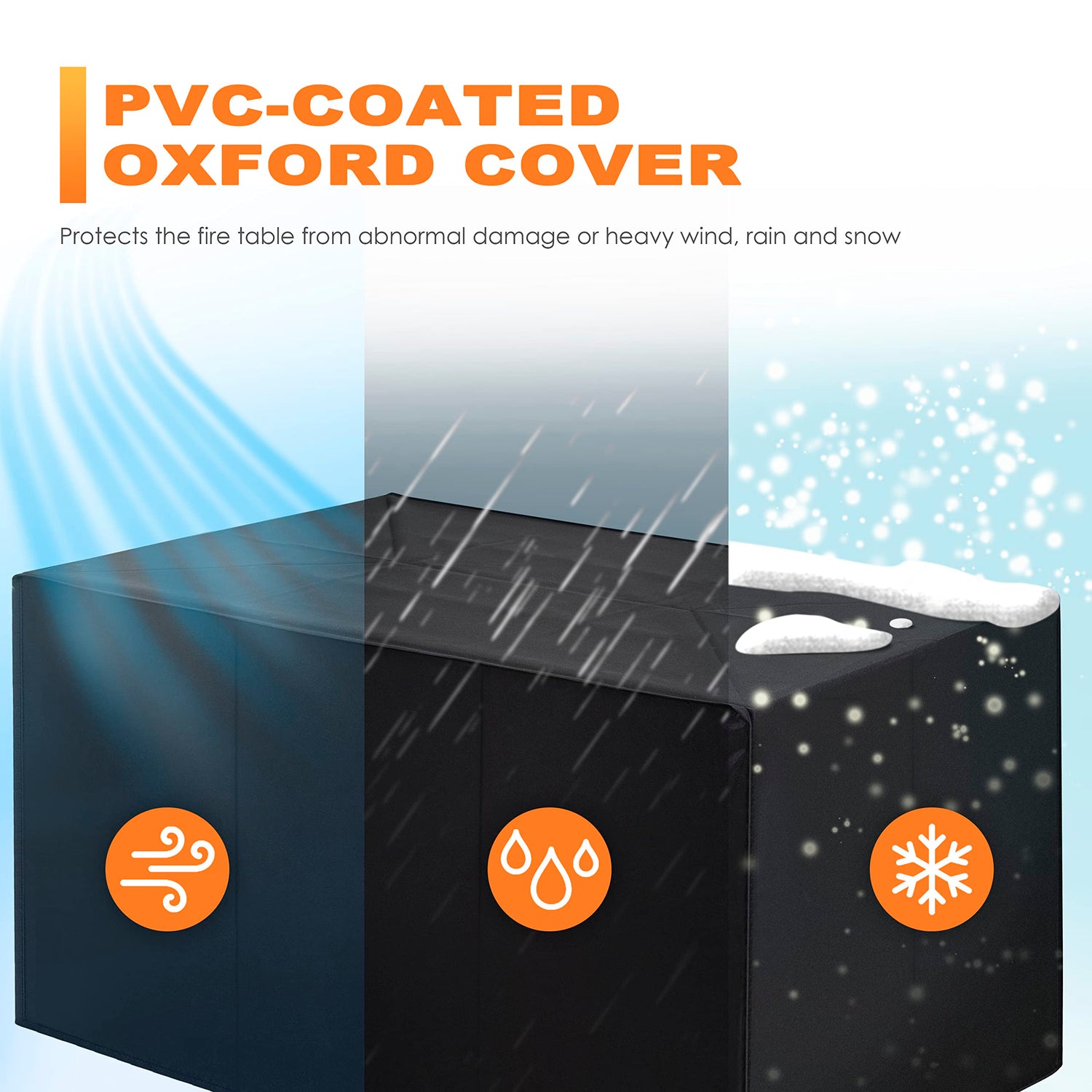- EXTRA ROOMY STORAGE SPACE: The excellent patio fire pit table is ideal for decorating yard, poolside, balcony, garden and porch. The elegant outdoor furniture can also be used as an outdoor table all year round by simply covering the burner with the included lid