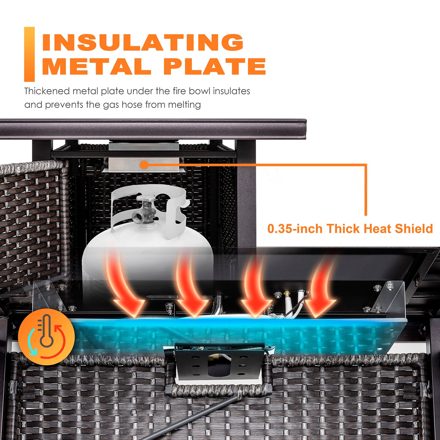 - DURABLE WICKER WITH COVER: Rust-proof and weather-resistant aluminum tabletop with stainless steel frame, NUU GARDEN propane fire pit table is heat-resistant. Use the matching oxford fabric cover when the outdoor gas fire table is not in use which is windproof, waterproof