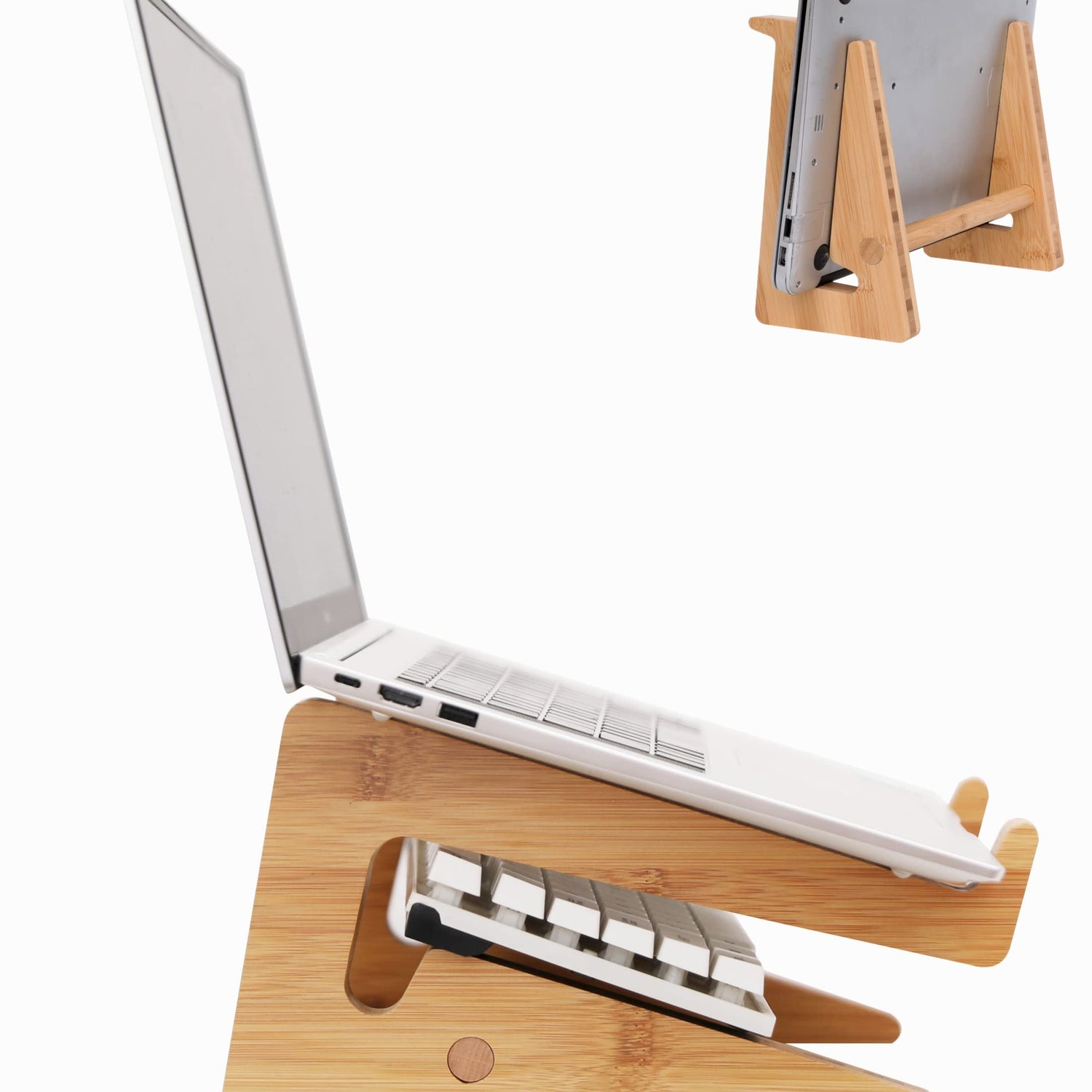 - 【Dual-use laptop stand】Standing it up to make it into a vertical laptop stand, and you can just insert the laptop to the slot to saving the space when you're not using your laptop.