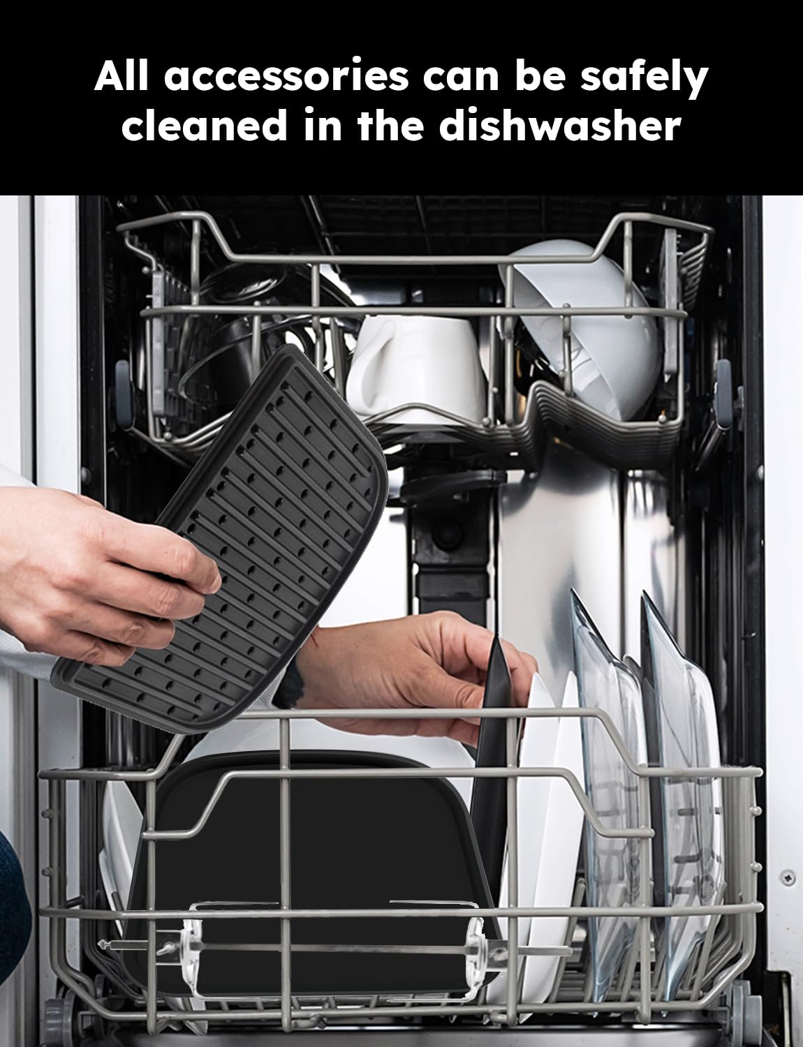 - EASY CLEANUP - Brio’s rack, tray, and rotisserie kits are premium never-rust stainless steel, and the reversible grill and griddle plate is ultra-non-stick. All are dishwasher safe, and the cleanup is a breeze.