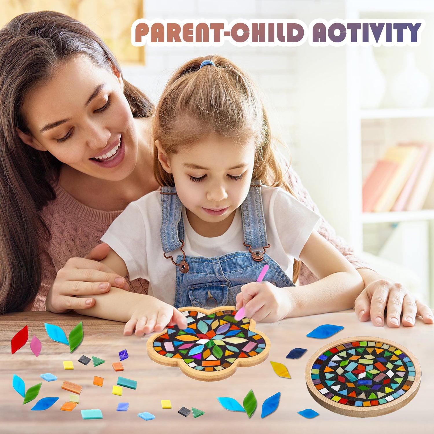 - 【Improve Children's Hands-on Skills】Mosaic Coaster Kit are not limited by imagination to create beautiful patterns.Coaster making kit can expand children's minds, as well as develop and exercise their hands-on skills and creativity. Stained glass starter diy mosaic kits can add a little color to your DIY craft projects and let your child enjoy the fun.