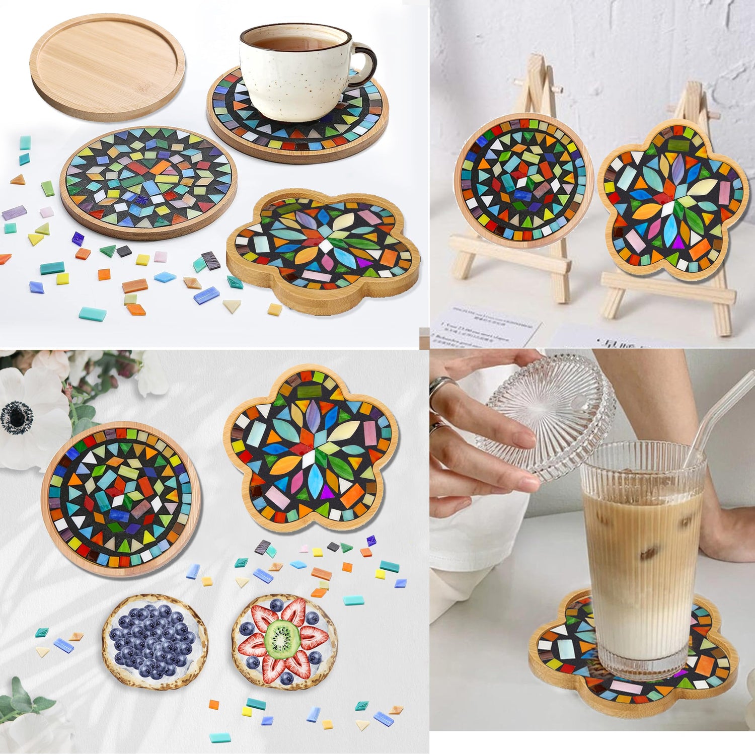 Nuyoach Diy Mosaic Craft Kit For Adults,Stained Glass Kits Mosaics Tiles For Crafts With Large Wooden Coaster Making Materials Package,Mosaic Ceramic Bulk Supplies For Women Kids Beginners Decor Gifts