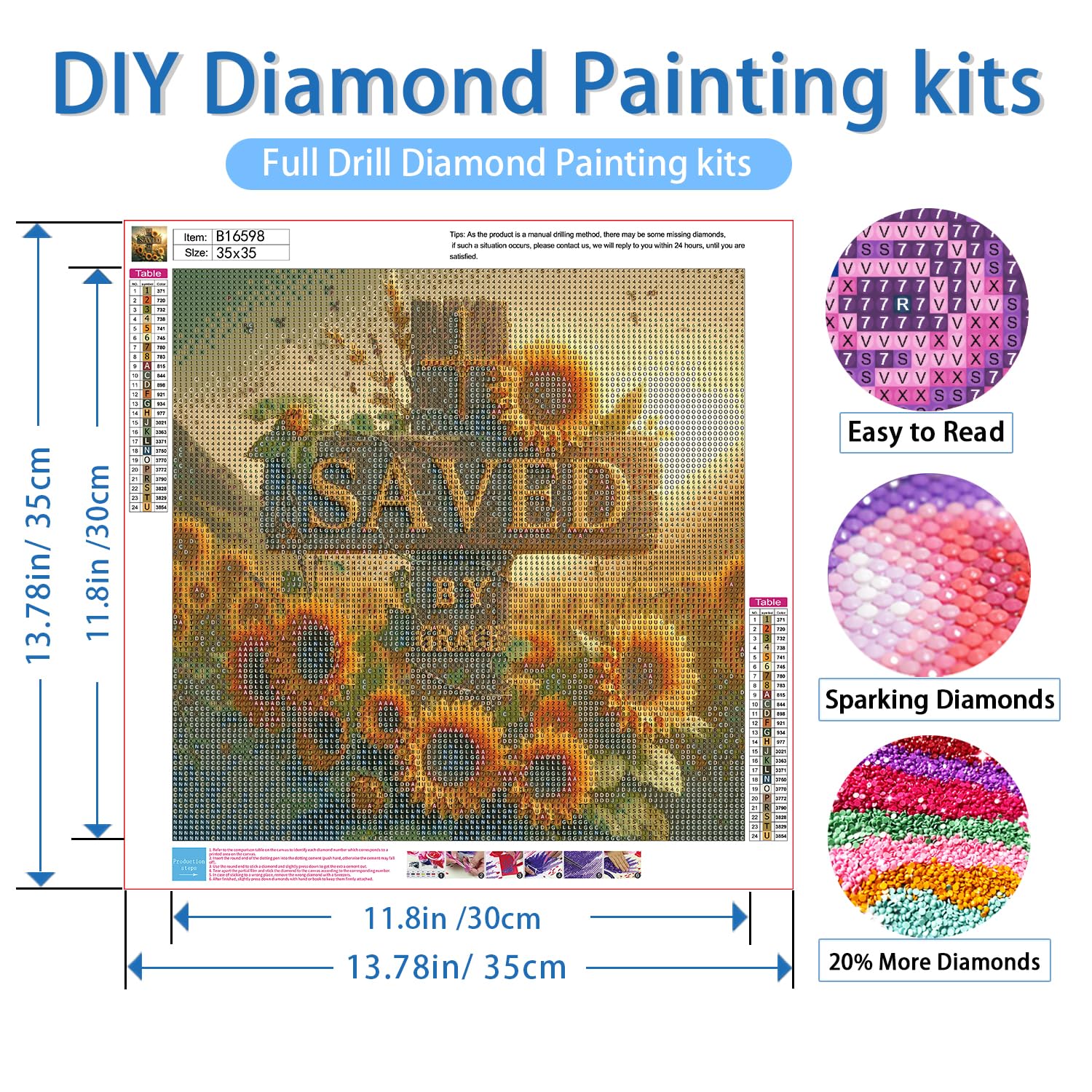 - 【Enjoy More Fun To Life】The diamond art have bright colors,during the creation process,can improve hands-on ability,reduce stress and ease emotions,experience a sense of accomplishment and cultivate patience.Religious cross with sunflower gem painting kit suitable for adults and beginner,it is the most favorite DIY decoration at the moment.