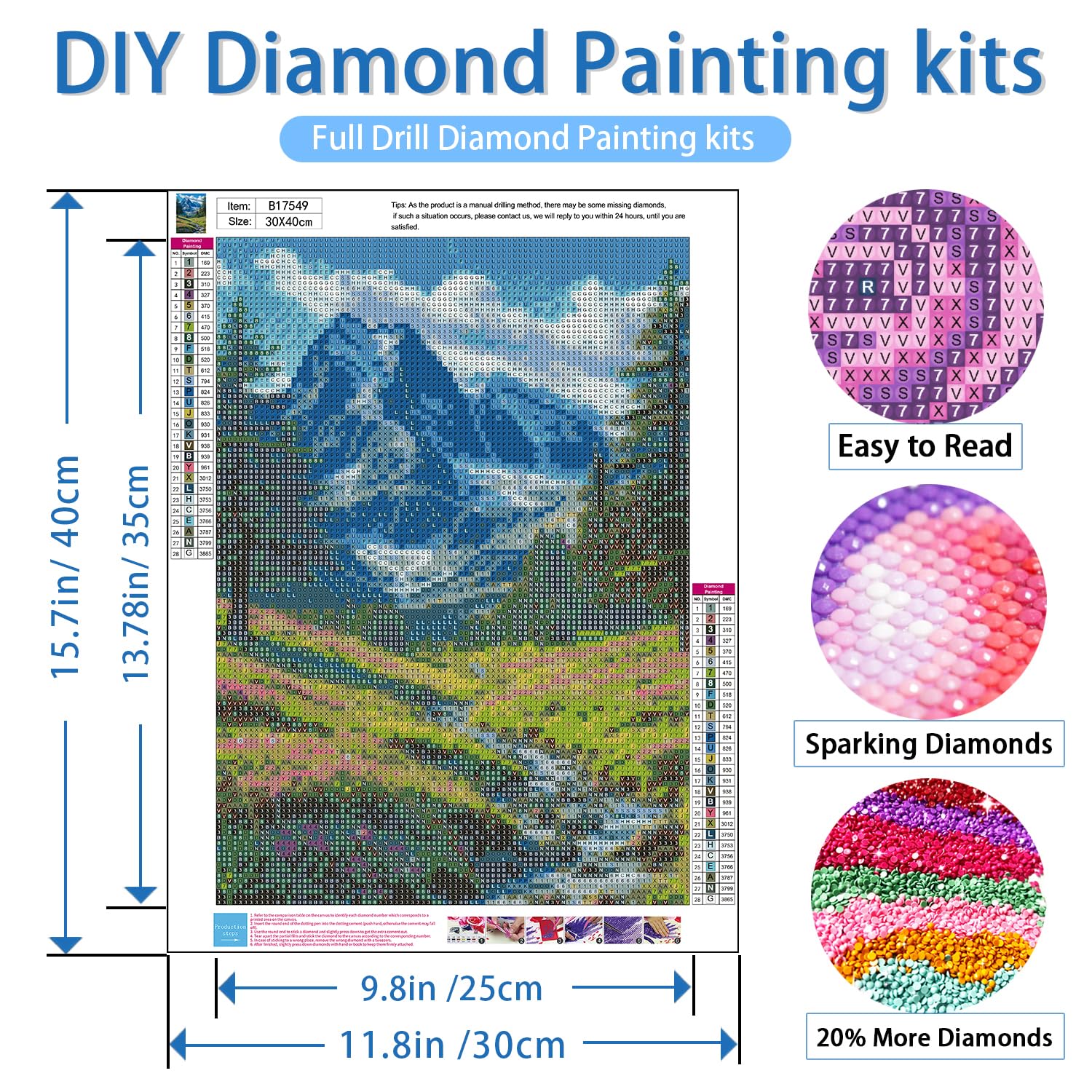 - 【After-Sales Service】If you find be short of diamonds or tools after you receiving or using mountain diamond art kits for adults,you have any problems,please contact us.we will make sure to solve all your problems within 24 hours.
