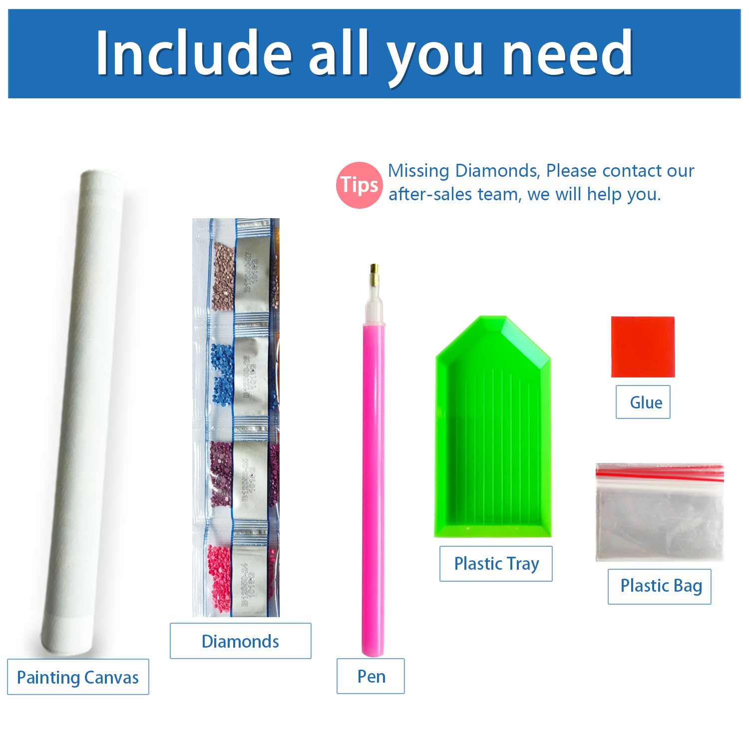 - 【Diamond Painting Kits Package Include】Each bird cross diamond art kits comes with all tools in need.1*HD painting canvas without frame,1*diamond pen, 1*plastic tray,1* clay,colorful round packs of diamonds.(Don’t worry about be short of diamonds,we'll provide 20% diamond more than need.)