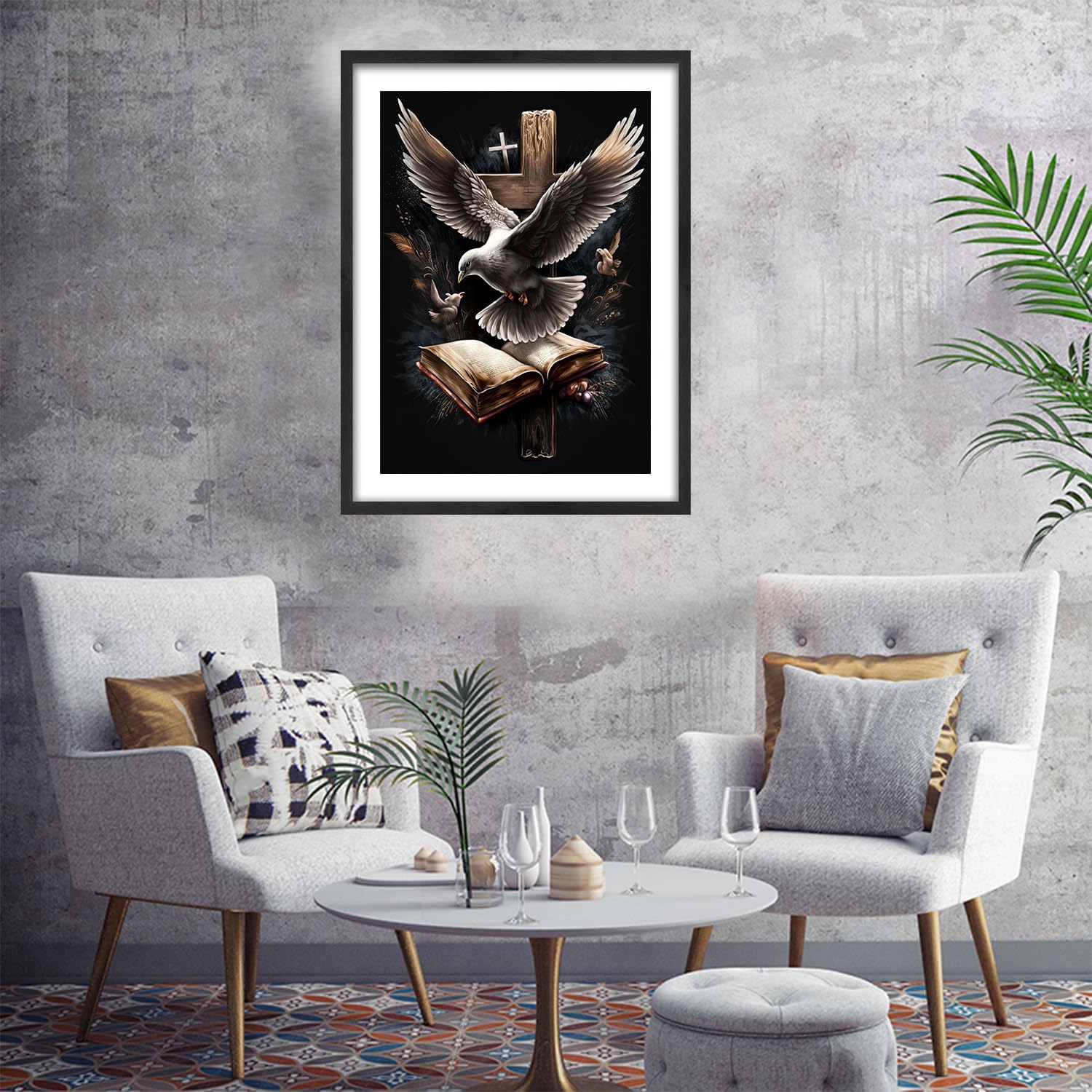 NWQZBYHT Religious Cross 5D Diamond Painting Kits for Adults,Bird Diamond Art Kits for Adults,DIY Round Full Drill Gem Art Kits for Beginner,Diamond Dots Picture Crafts Home Wall Decor 12x16 Inch