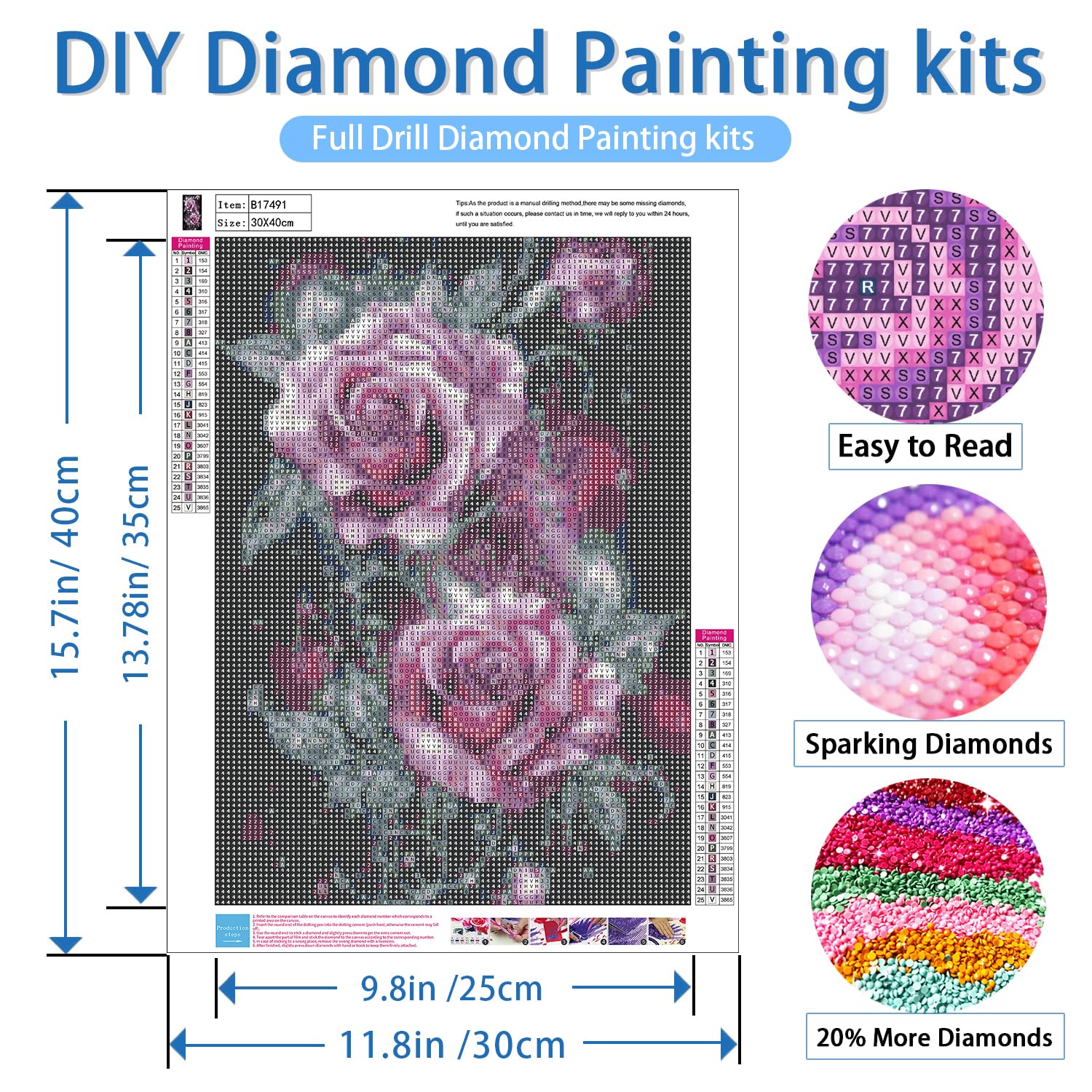 - 【Diamond Painting Kits Package Include】Each rose diamond art kits comes with all tools in need.1*HD painting canvas without frame,1*diamond pen, 1*plastic tray,1* clay,colorful round packs of diamonds.(Don’t worry about be short of diamonds,we'll provide 20% diamond more than need.)