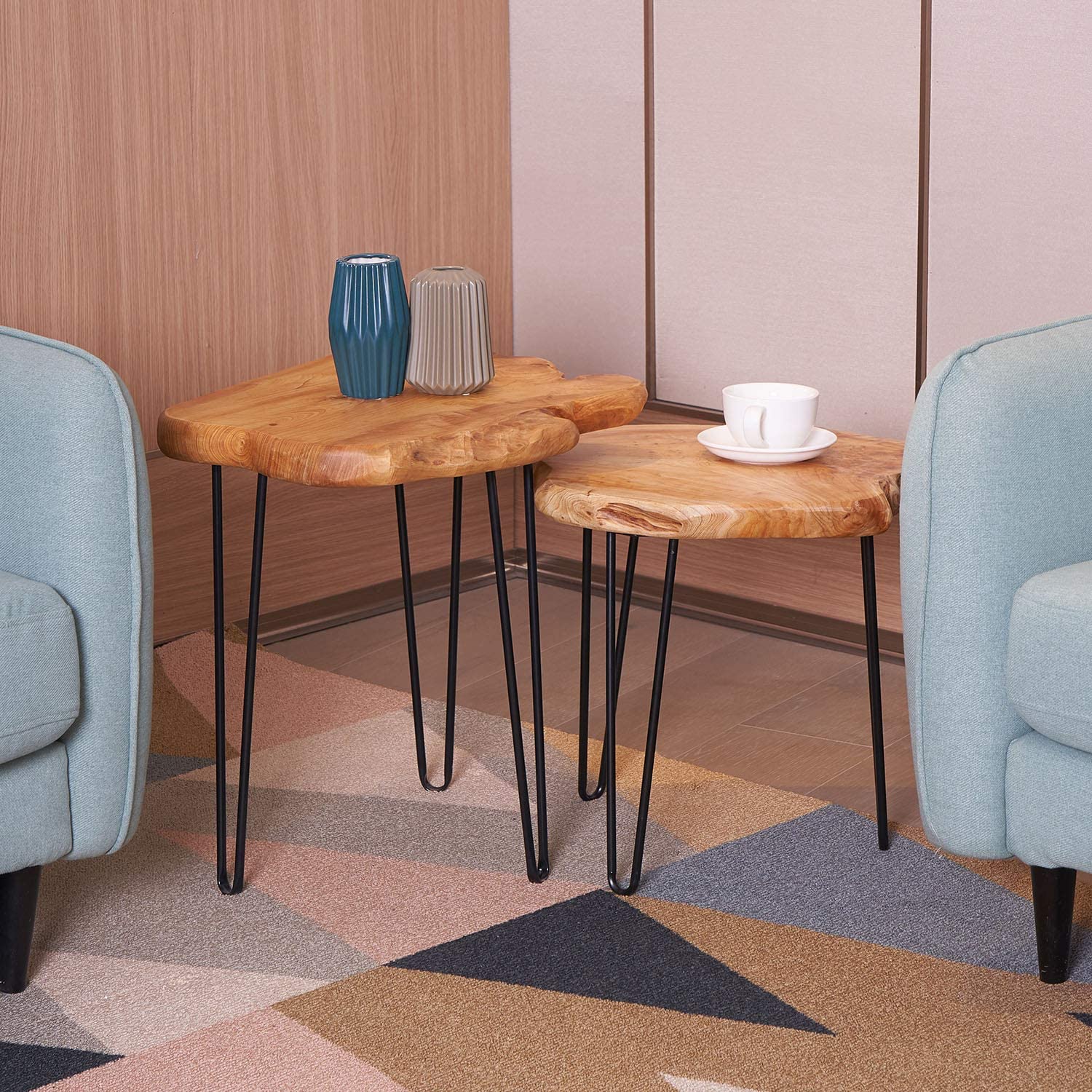 - STURDY & DURABLE: The cedar wood end table is constructed carefully with selected reclaimed cedar stumps and an easy care natural lacquer finish. And supported by 3 heavy duty hairpin legs in matte black, the structure is solid and stable, the top surface is wear- resistant, simple yet practical.