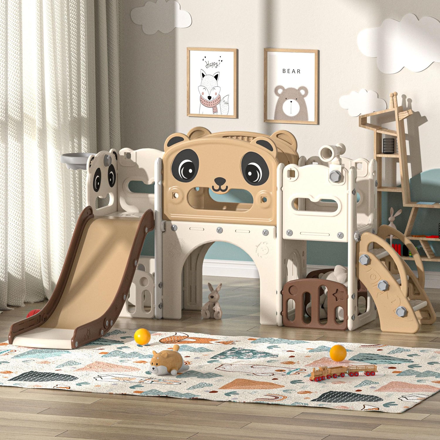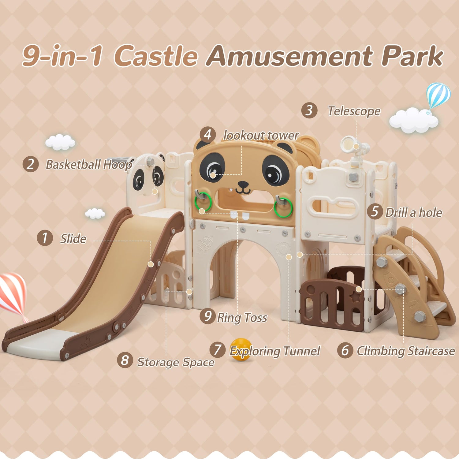 - 8-in-1 Kids Playground : Featuring a long slide, a 3-step ladder, a top aisle, a storage space, a crawl-through tunnel, a telescope, a basketball hoop and a ball, this toddler slide set allows 2 and more children to play together and enjoy endless fun