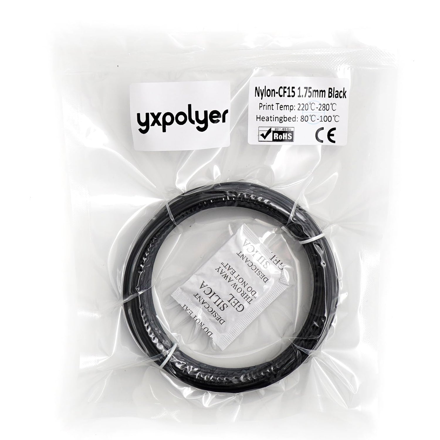 • High-Performance Carbon Fiber Nylon Filament: YXPOLYER carbon fiber nylon filament combines nylon and chopped carbon fibers for superior stiffness and strength. Ideal for automotive, aerospace, sporting goods, and applications like oil-free bearings and sports equipment.