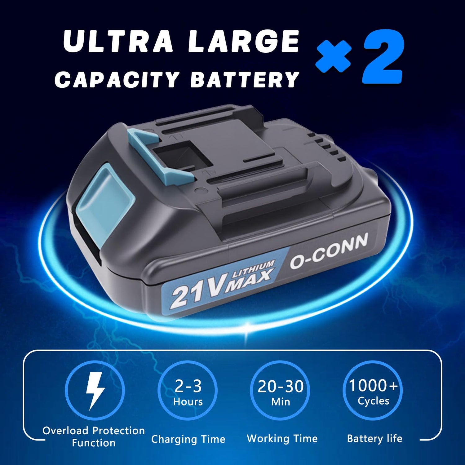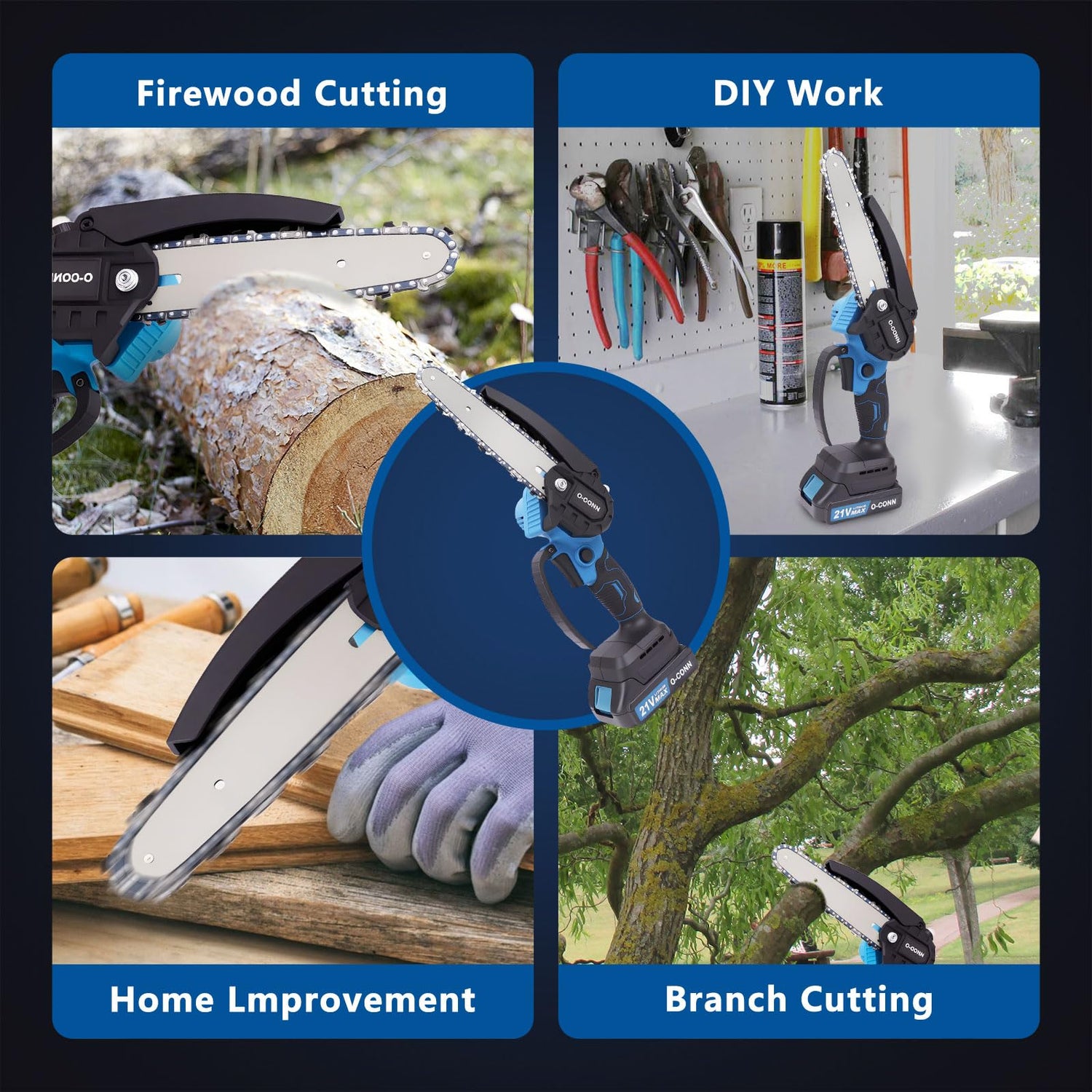 - High Efficient Cutting: O-CONN mini chainsaw uses a more powerful pure copper motor and 21V MAX 2000mAh high power battery. Deep quenched and hardened 6-inch integrated guide plate and chain have high wear resistance and durability. With fast heat dissipation, cutting efficiency is higher