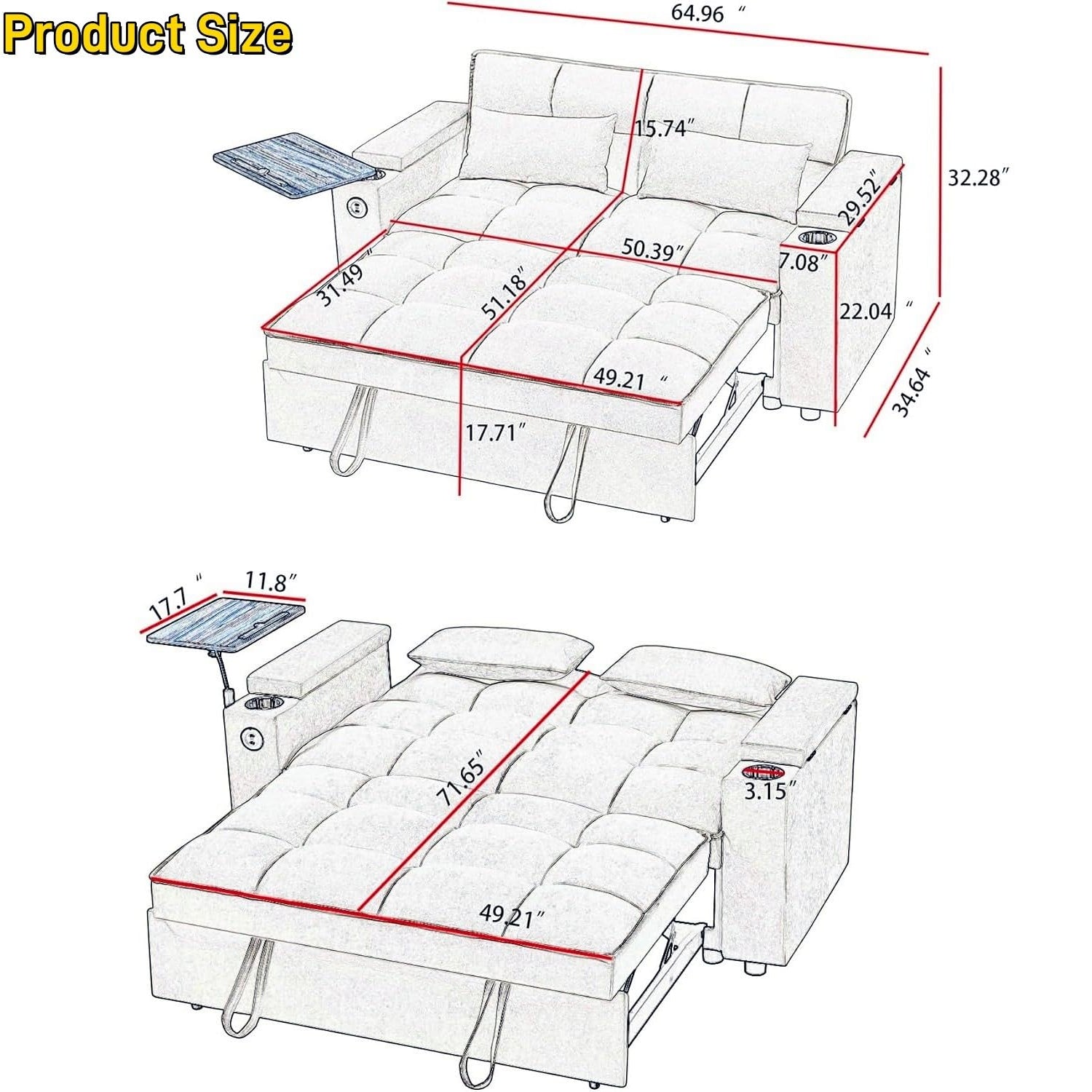 - 【3 in 1 Functional Armrest】 The innovative sofa sleeper features two built-in charging ports (2 USB-A, 1 Type-C), allowing you to conveniently charge your electronic devices.The cup holders, enjoy leisure life at your fingertips. Hidden storage space under armrest, perfect for remote controls or books