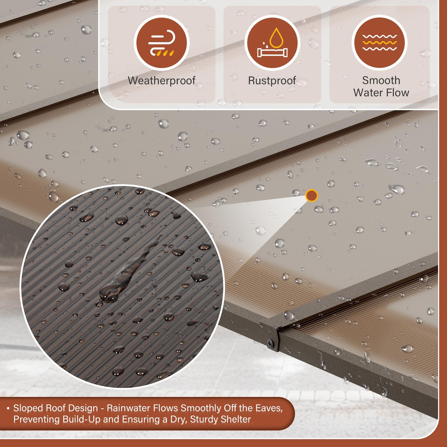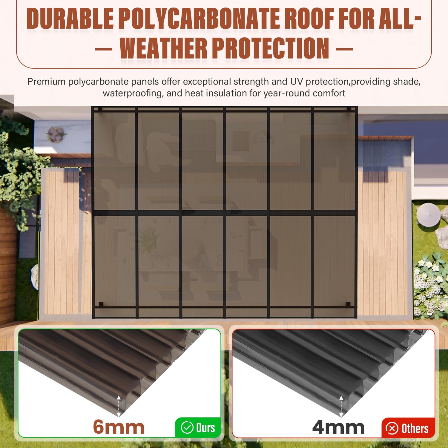 - Sloped Roof Design: The sloped roof effectively prevents water accumulation, ensuring efficient drainage while adding a modern, stylish touch to your patio or backyard.