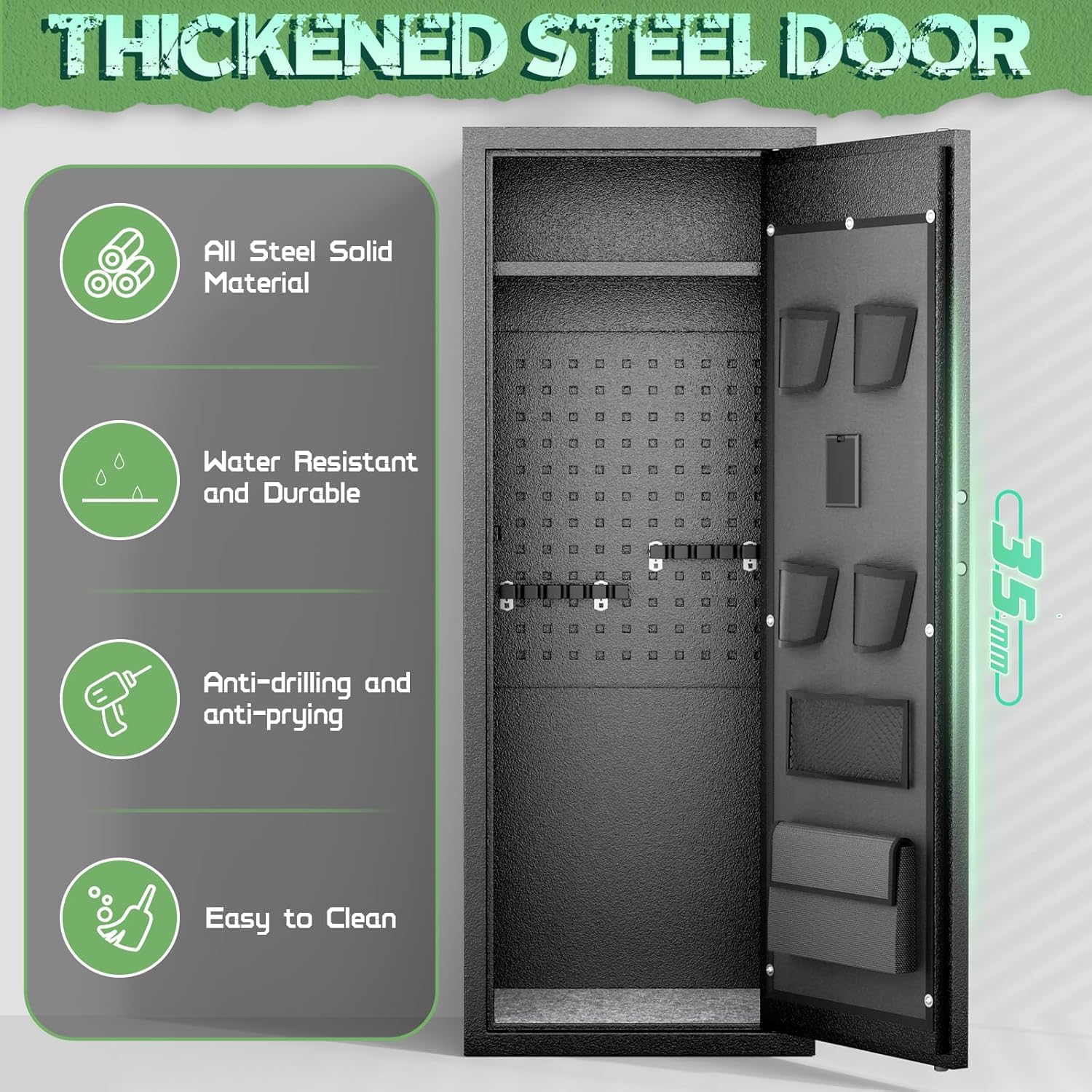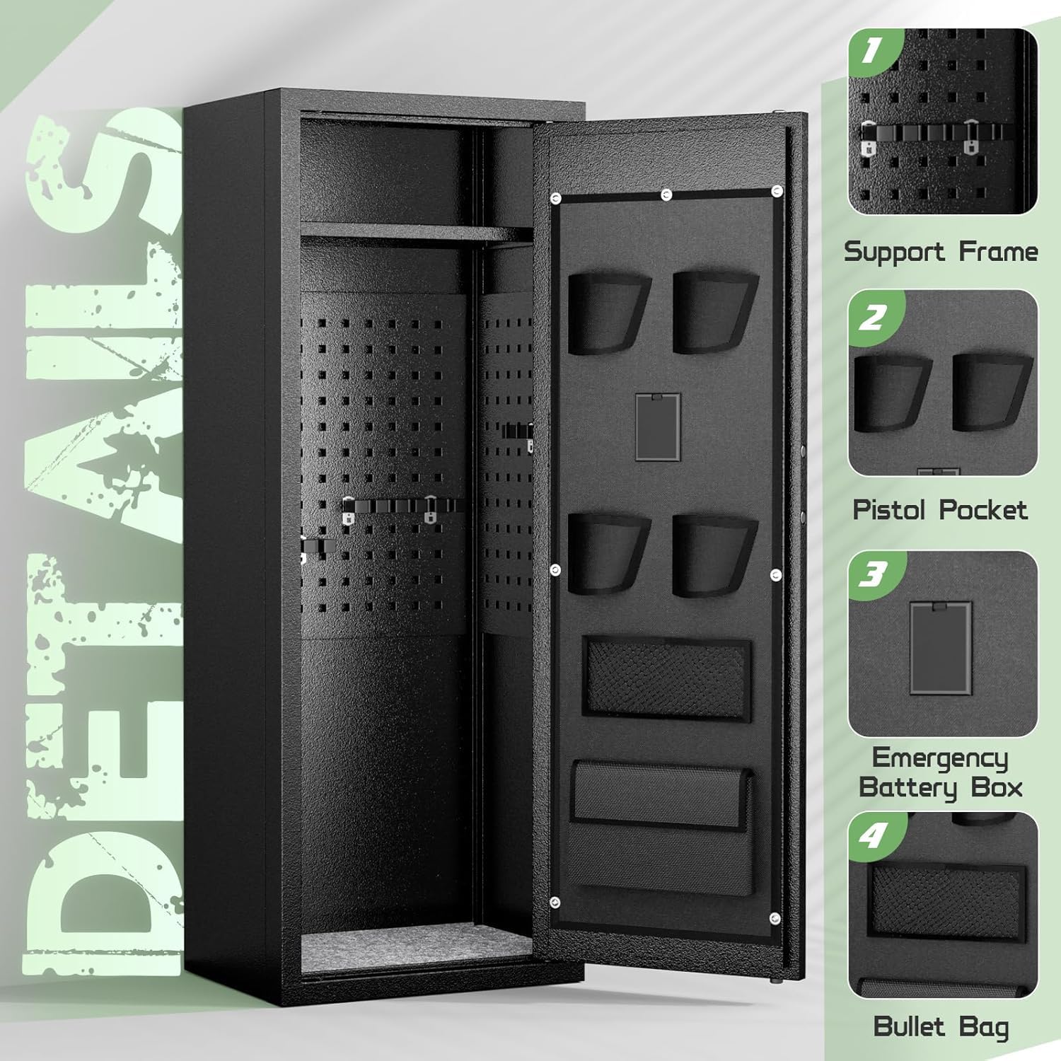 - Strong & Fireproof – Constructed from heavy steel and built with fire-resistant materials, this rifle safe keeps your guns protected from theft and fire.