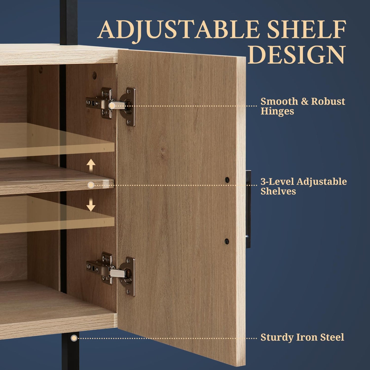 - Spacious Storage Solution: 5 tier ladder bookshelf crafted with three tiers and a cabinet, our bookshelf with cabinet provide an ample storage capacity for your organizational needs. The adjustable shelf behind the cabinet doors introduces versatility, enabling you to personalize the storage to accommodate items of various sizes and shapes