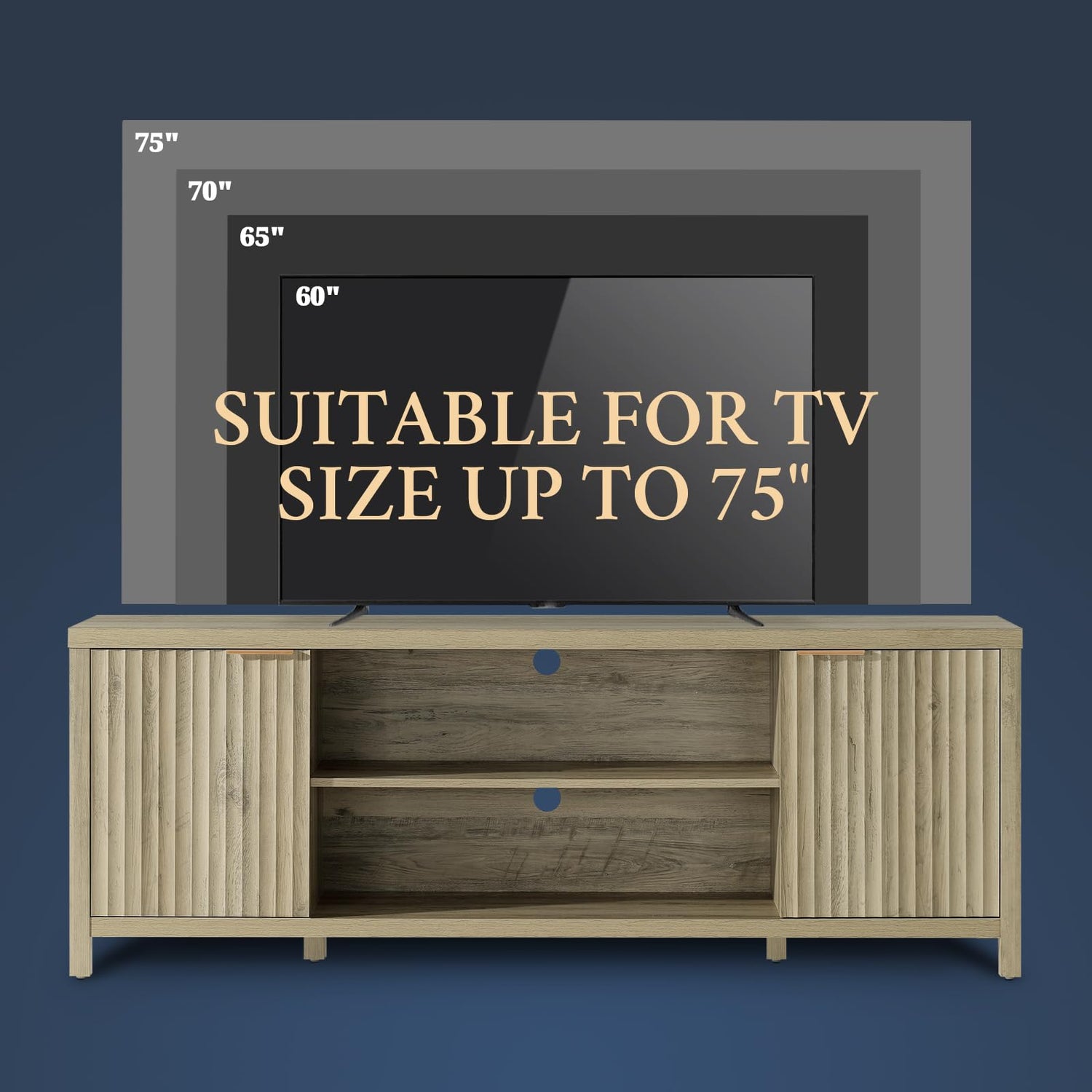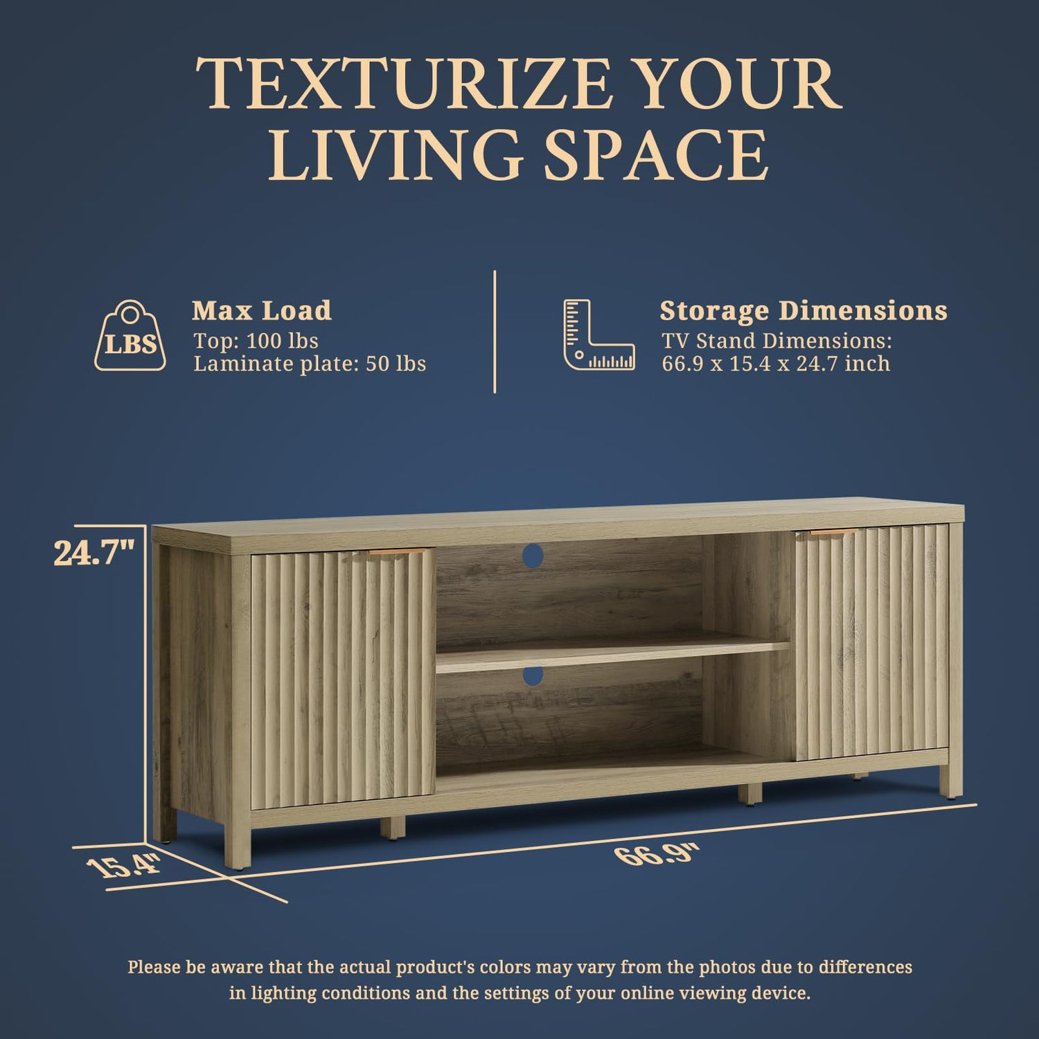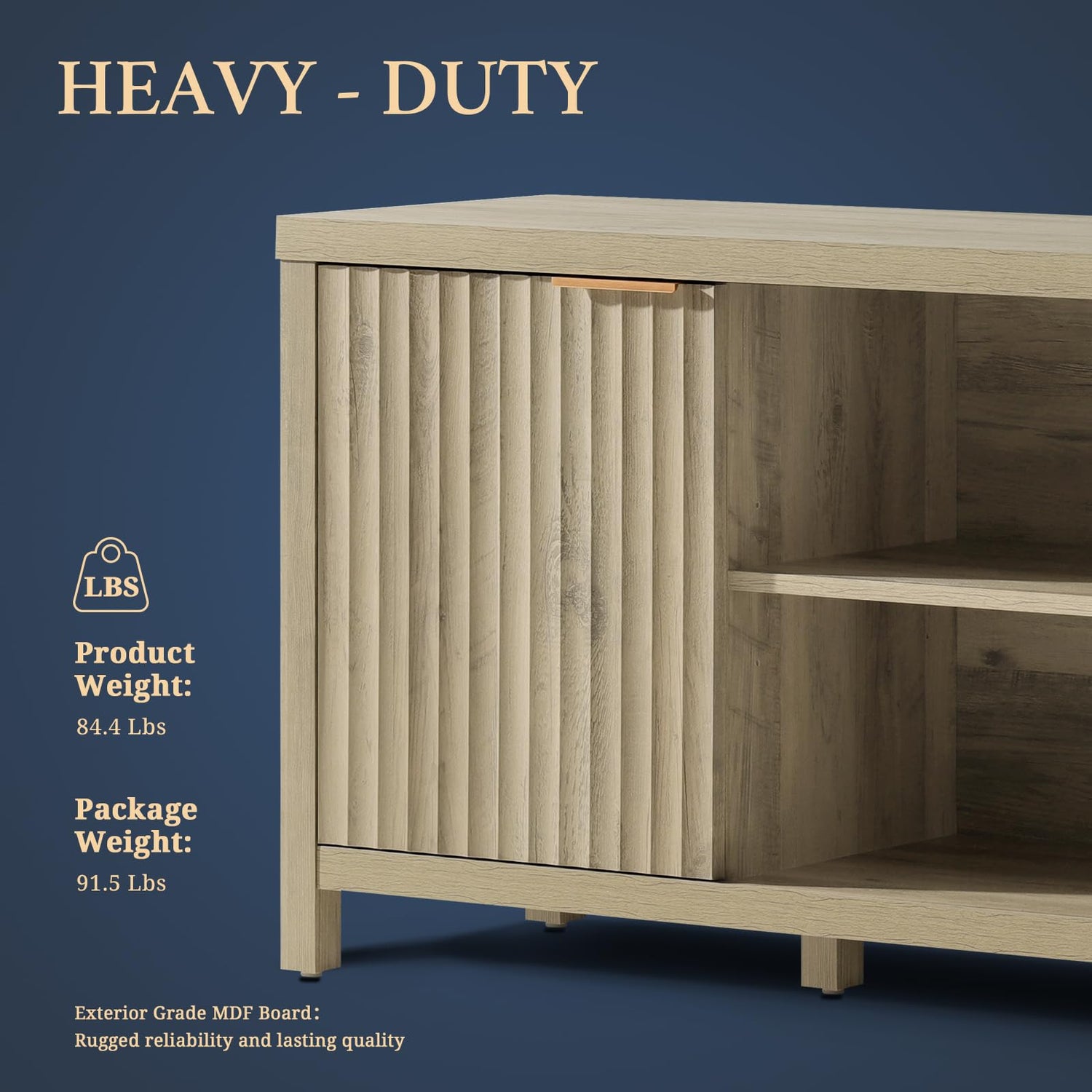 OAKHAM HOME Fluted TV Stands for Living Room, Heavy Duty Entertainment Center with Storage, Mid Century Modern Television Stands for 60/65/70/75 TV, Oxford Media TV Console (Large,Sunwashed Ash Oak)
