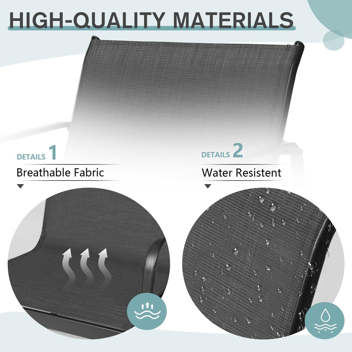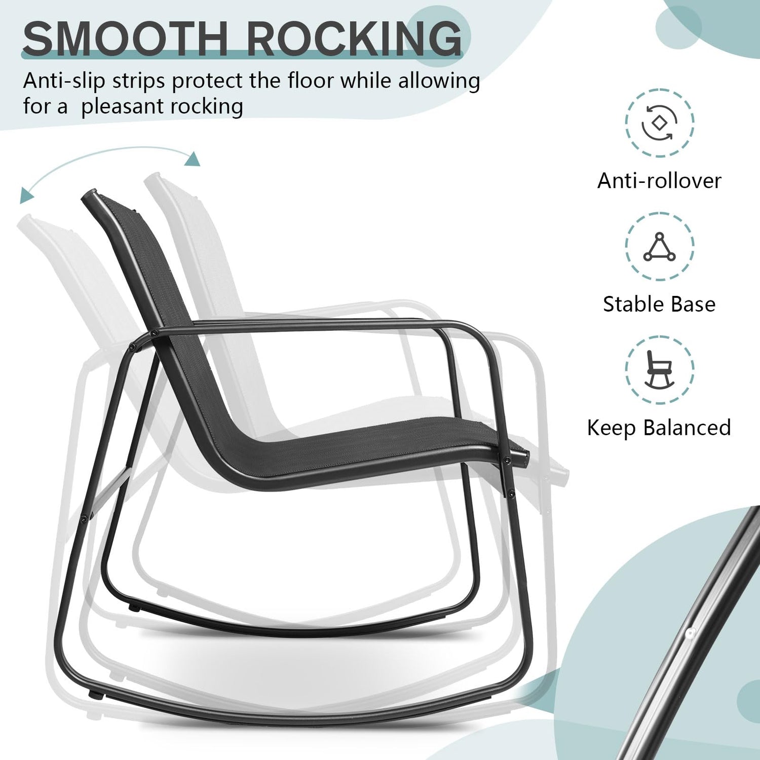 - 【Comfortable & Functional】 Made of breathable Textilene fabric, The stable rocking base with non-slip rubber mats and adjustable stoppers makes each chair rock slightly and keep balanced. The ergonomic seat with a curved design will offer you a cozy relaxing experience.