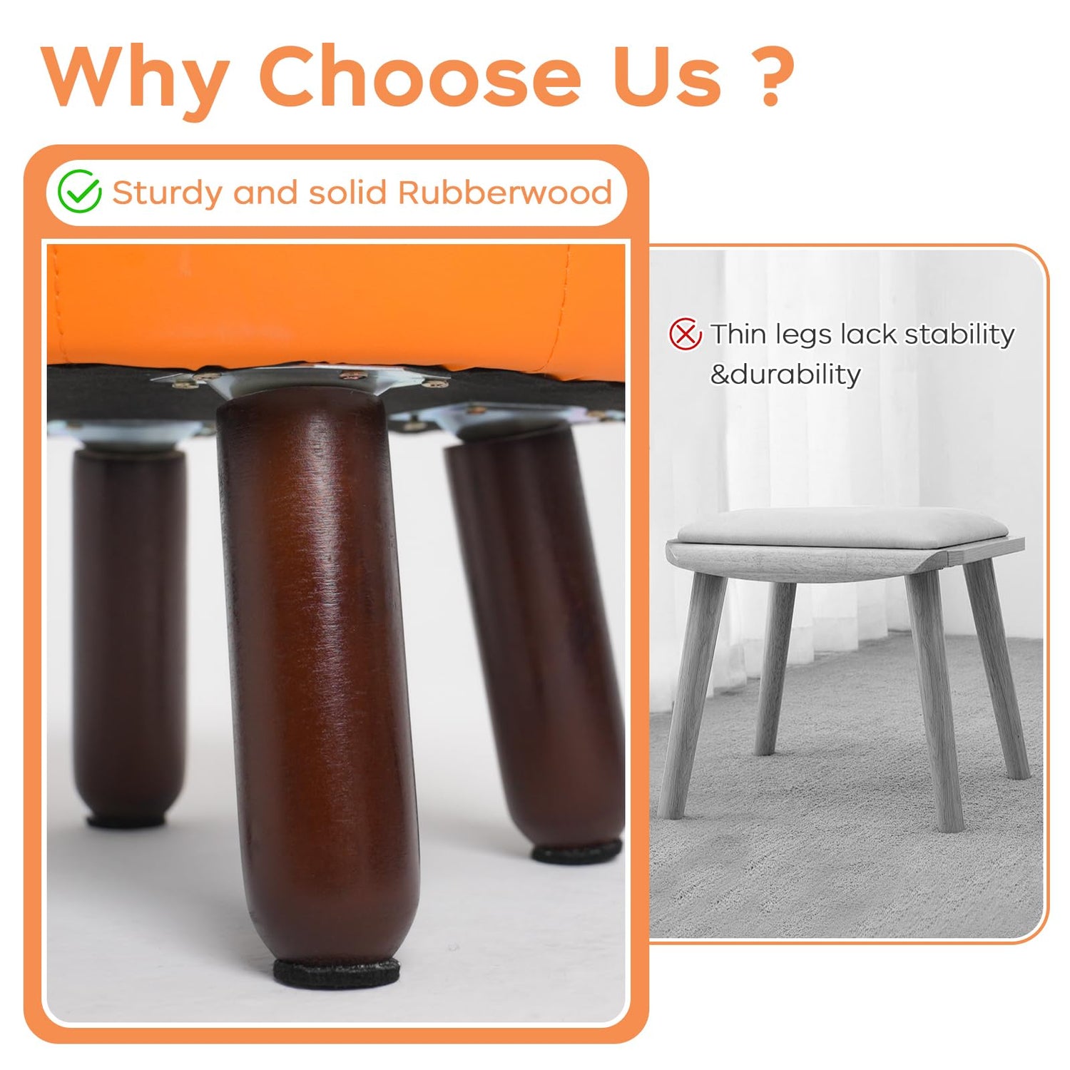 - 【Anti-Slip Design】- These leather foot stools small ottoman rubber legs come with dedicated felt pads to prevent scratches on floor and keep it from sliding.Wood leg with non-slip felt pad is quiet when moving, and can avoid leaving scratches on floor.The small footstool is perfect for small spaces and is compact enough not to get in anyone's way.