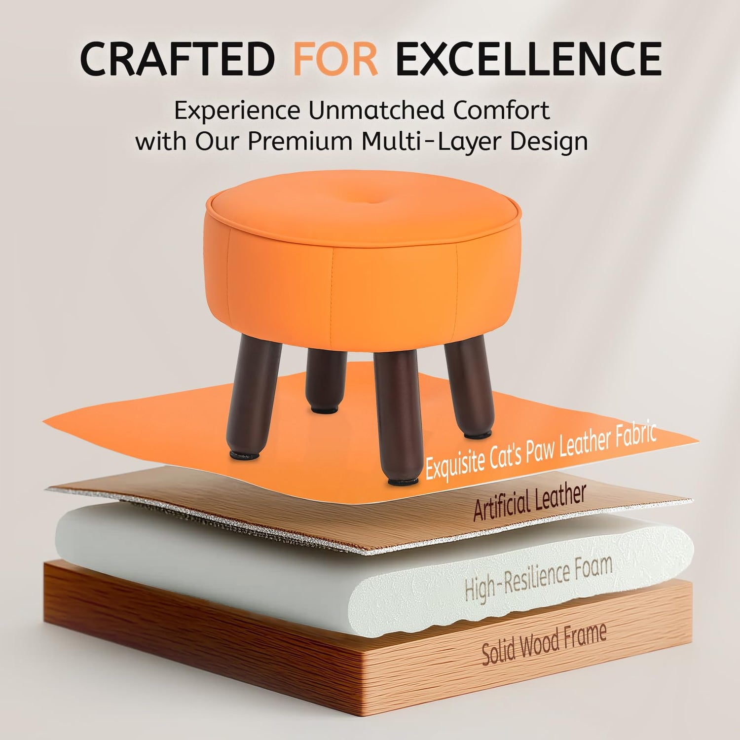 oakvivo 13in Small Foot Stool Ottoman, Round Faux Leather Foot Rest for Couch, Under Desk Pouf Footstool Footrest with Non-Skid Rubber Legs for Ling Room, Bedroom, 13''L x 13''W x 10.2''H, Orange