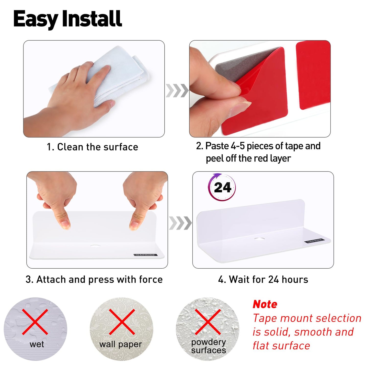 - EASY INSTALLATION: Floating shelf installation is simple, no damage and no holes in your walls, Each floating shelves has 2 cable clips and 5 x Double-sided tapes.