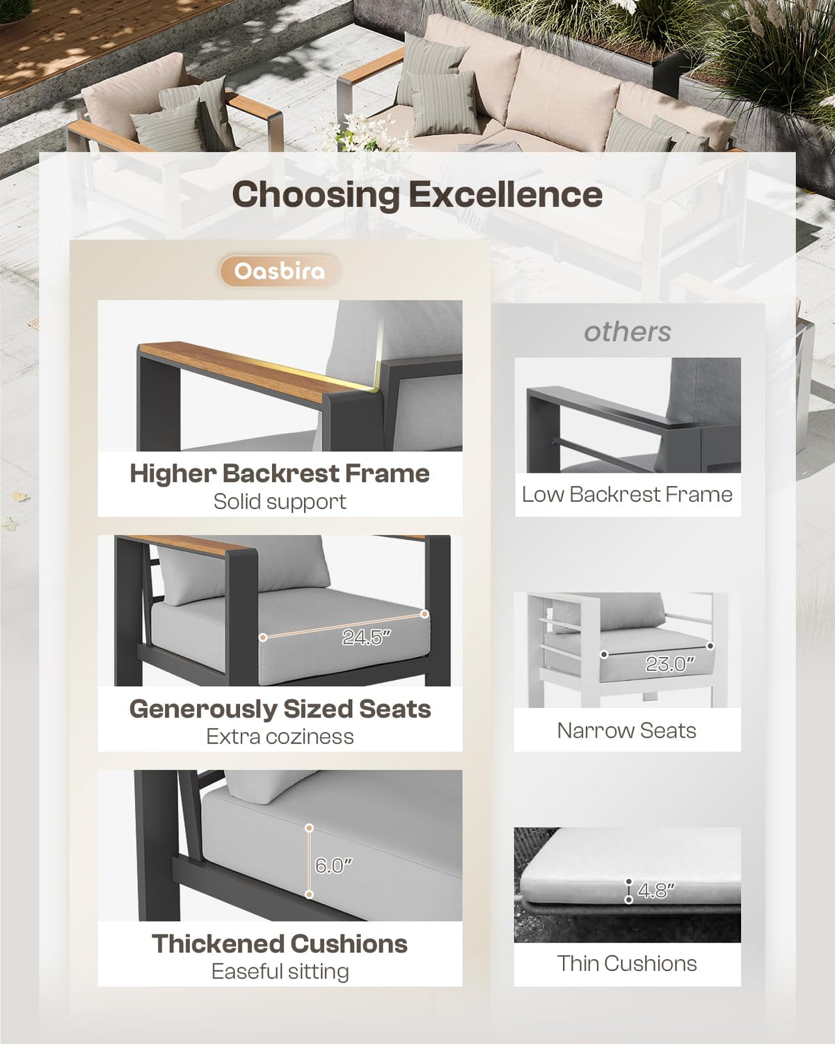 Oasbira Aluminum Outdoor Patio Furniture Set with Coffee Table, 5 Piece Patio Conversation Sets, Patio Sectional Furniture Set for Porch, Balcony, Yard, Gray