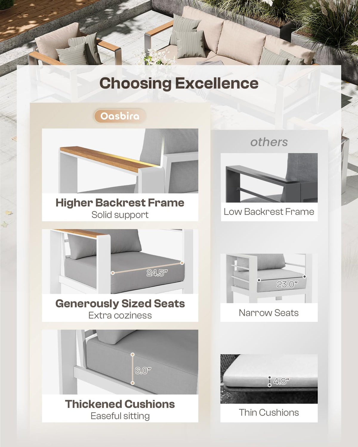 Oasbira Aluminum Outdoor Patio Furniture Set with Coffee Table, 5 Piece Patio Conversation Sets with Washable Thick Cushions, Patio Sectional Furniture Set for Porch, Balcony, Deck, White