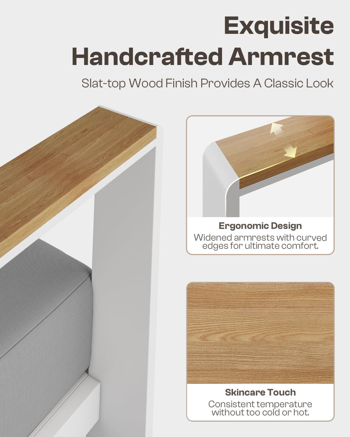 - 【Premium Materials】 This item is shipped in 4 boxes and may not be delivered at the same time. The patio furniture set features a superior aluminum frame with a powder-coated finish for enhanced durability and stability, and water-resistant olefin cushions for easy maintenance and long-lasting outdoor use.
