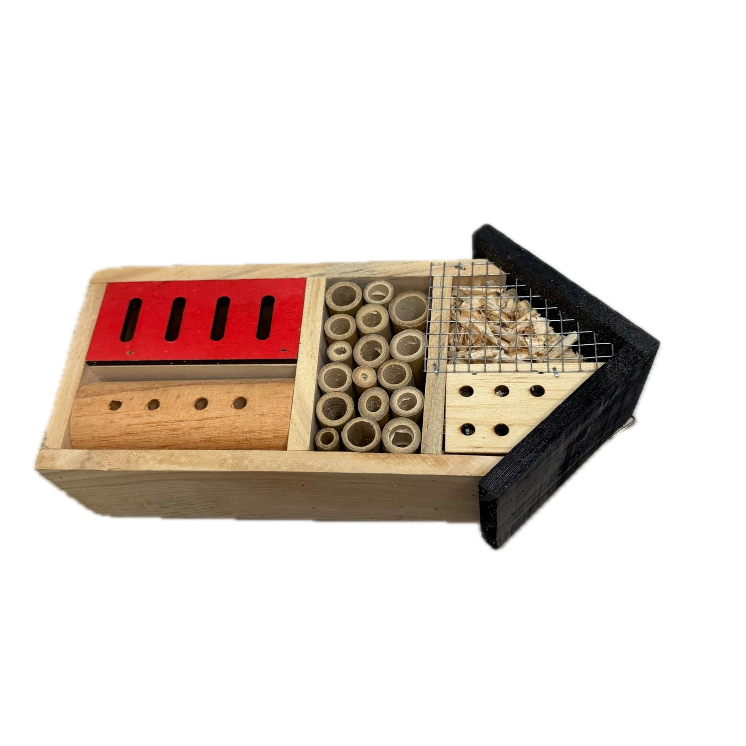 - OBELGEOYA Wooden Insect House - Natural Outdoor Insect Hotel for Bees, Butterflies, Ladybugs, Beneficial Insects, Eco-Friendly Bug Hotel, Hanging Garden Habitat for Pollinators, 10.2 x 5.1 x 3.5 Inch