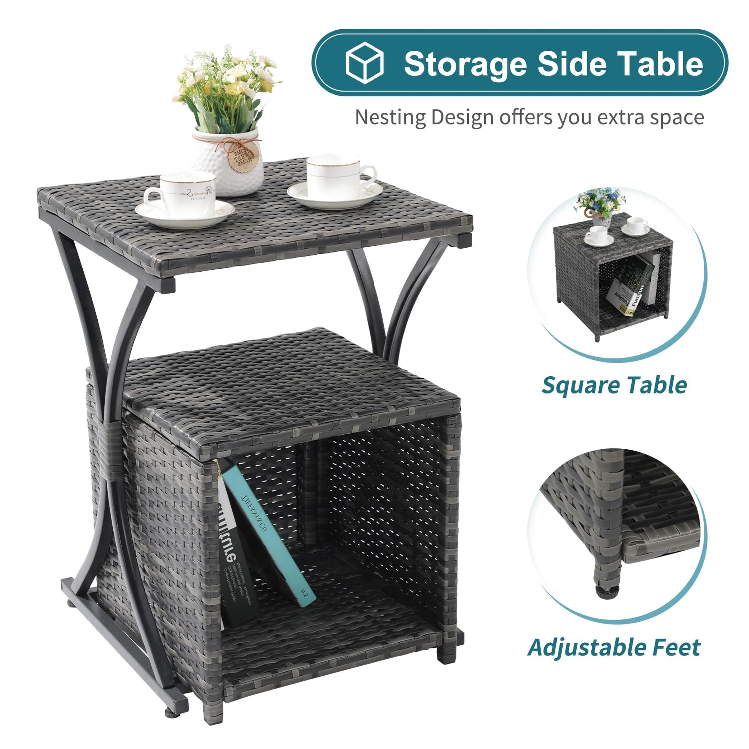 - Special Nesting - Featured with hand-woven wicker, this side coffee table is ideal for serving snacks, fruit, and drinks and includes a lower shelf for extra storage. A X shape table and a storage table easily nest together when you need to create more space.