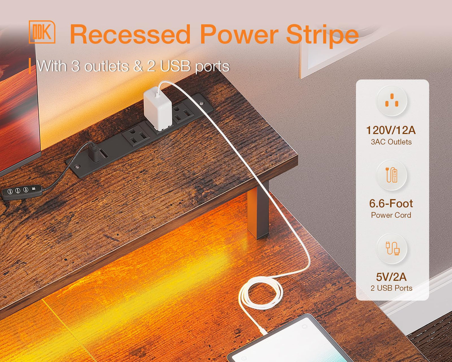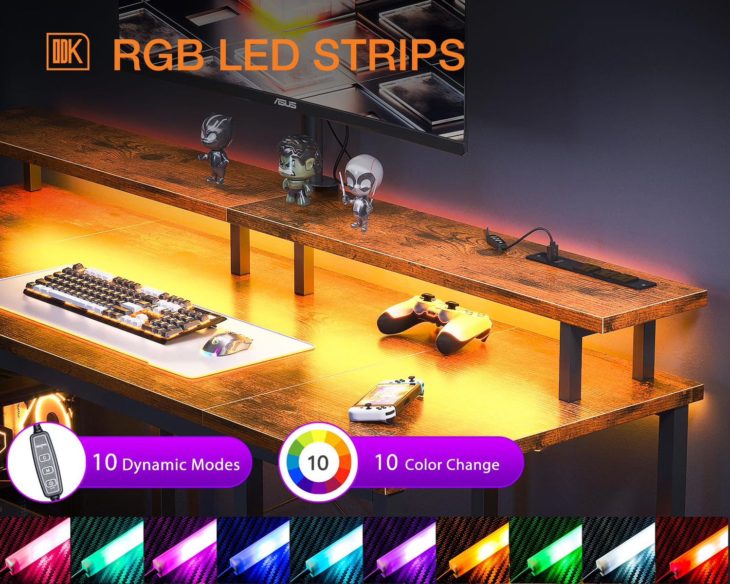 - Gaming Enviroment: Our desk features a full monitor stand accommodate two monitors or laptops, built-in LED lighting create strong gaming ambiance.