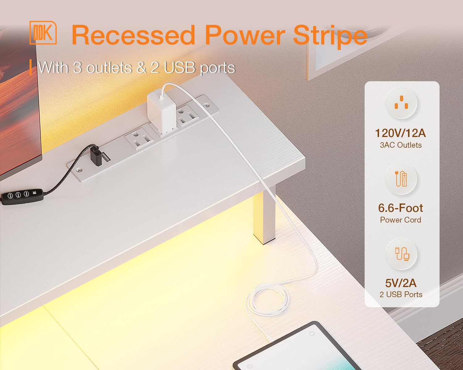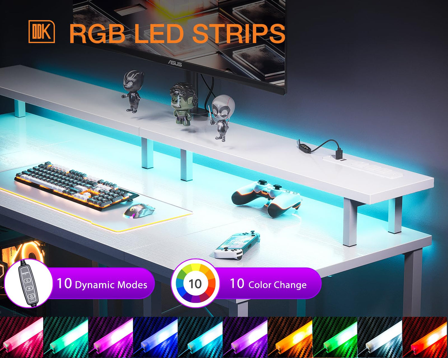 - Gaming Enviroment: Our desk features a full monitor stand accommodate two monitors or laptops, built-in LED lighting create strong gaming ambiance.