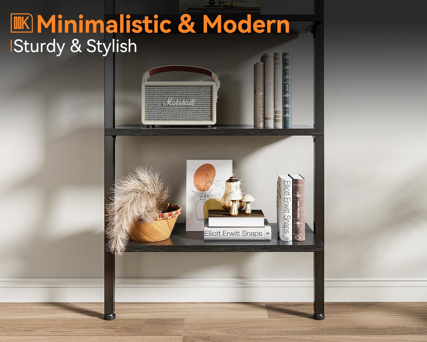 ODK 5-Tier Ladder Shelf, 74 Inches Wall Mounted Ladder Bookshelf with Metal Frame, Open Industrial Shelves for Home Office, Bedroom and Living Room, Black
