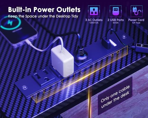 - 【USB Charging Ports & Power Outlets】The office desk is equipped with 3 power outlets and 2 USB charging ports for your electronic devices, you can easily and conveniently charge your smart phone, gaming gear or Bluetooth devices when play computer games or work from home. A versatile hook provides additional storage space for your convenience.