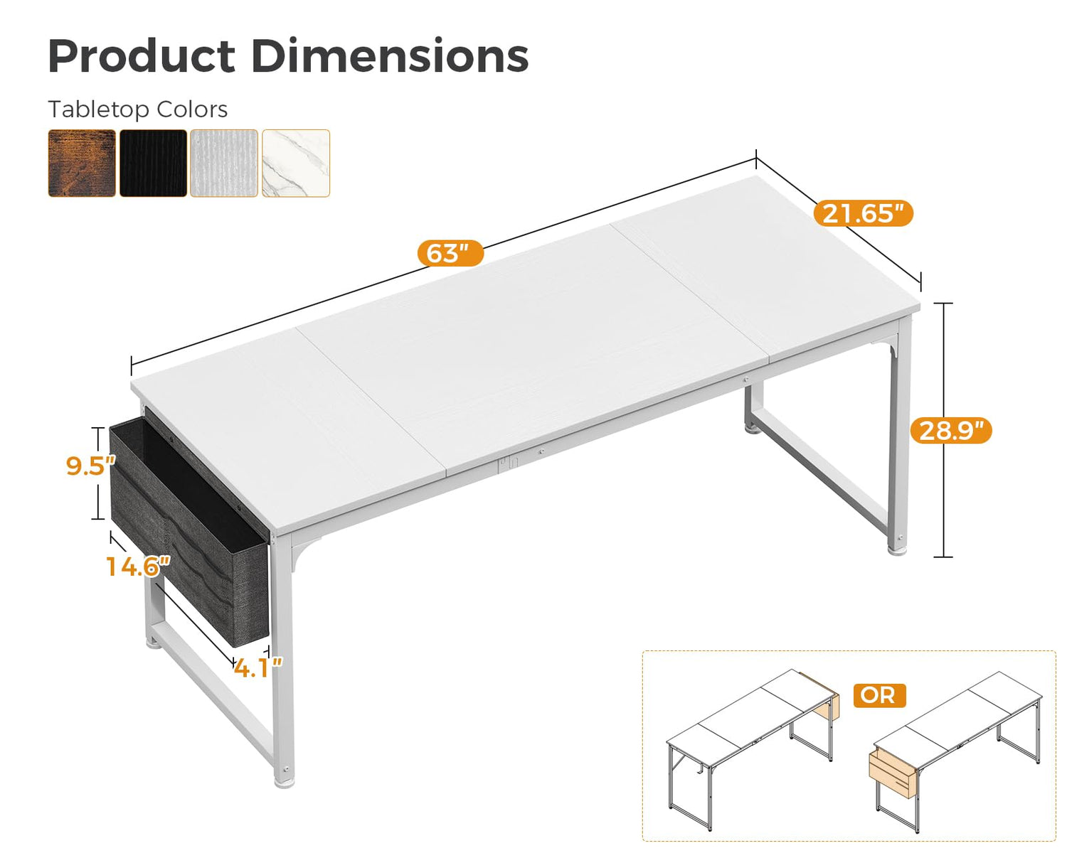 - Desk with Storage: A side-mounted bag provides extra storage space for books or office supplies so as to optimize desktop organization. On the opposite side, a detachable hook allows you to hang headphone or bag.