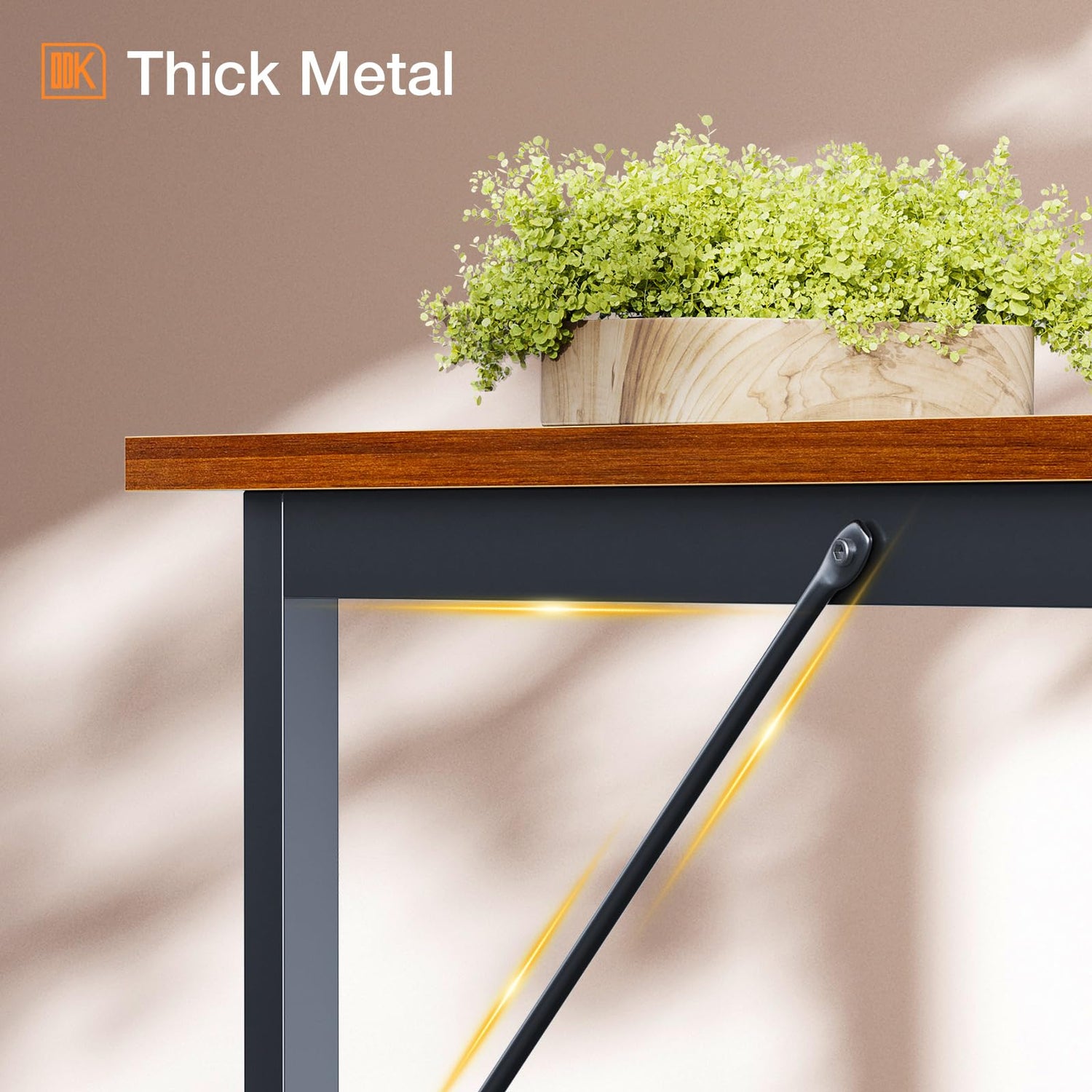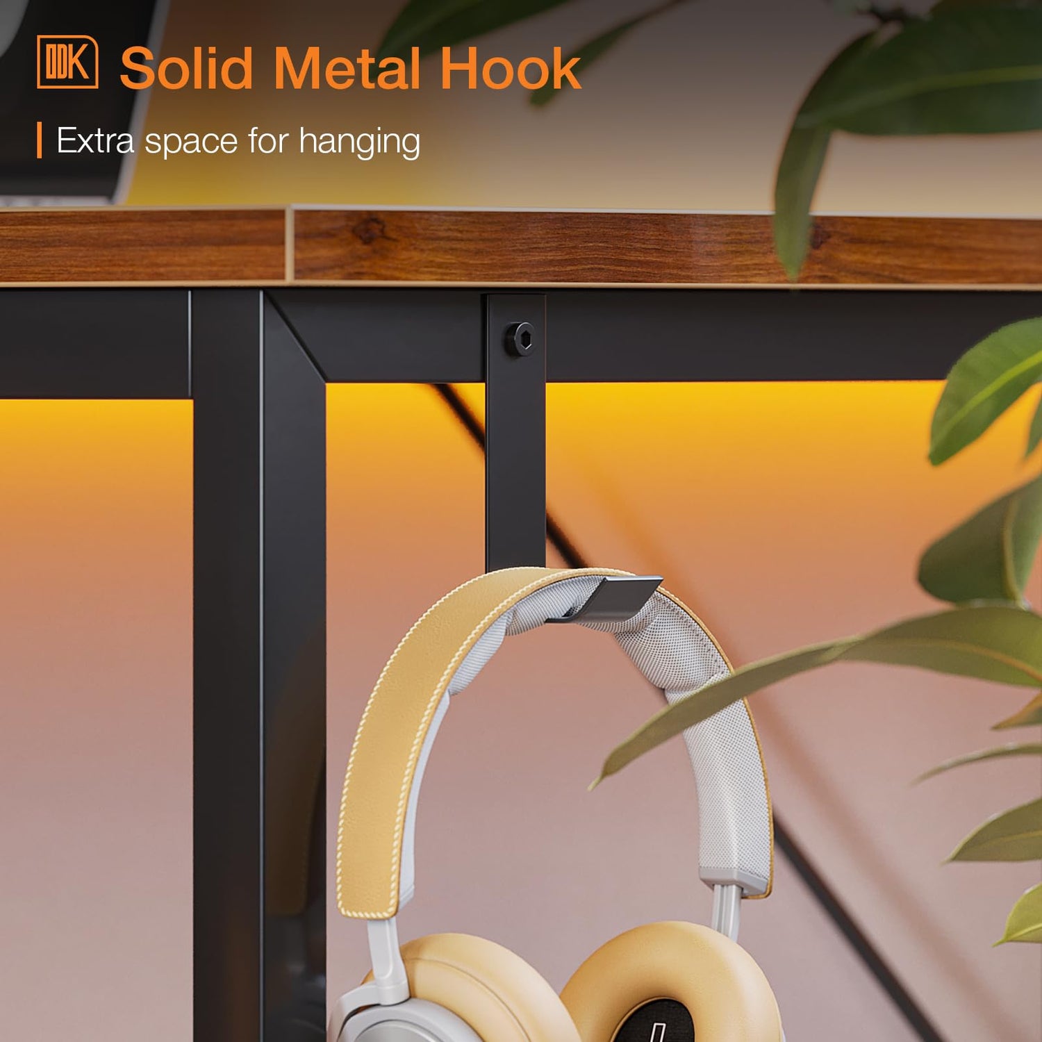 ODK Computer Writing Desk 55 inch, Sturdy Home Office Table, Work Desk with A Storage Bag and Headphone Hook, Deep Brown