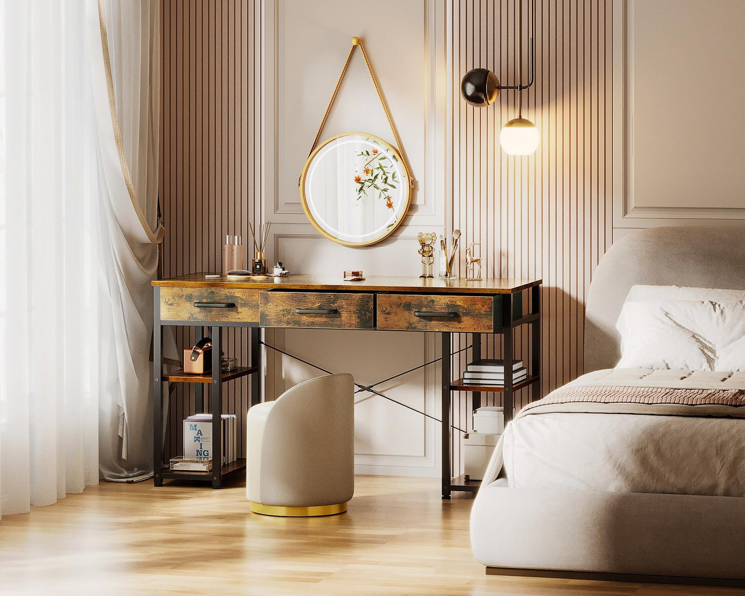 ODK Vintage Small Computer Desk with Fabric Drawers and Storage Shelves - Modern Writing Table, 48"x16"