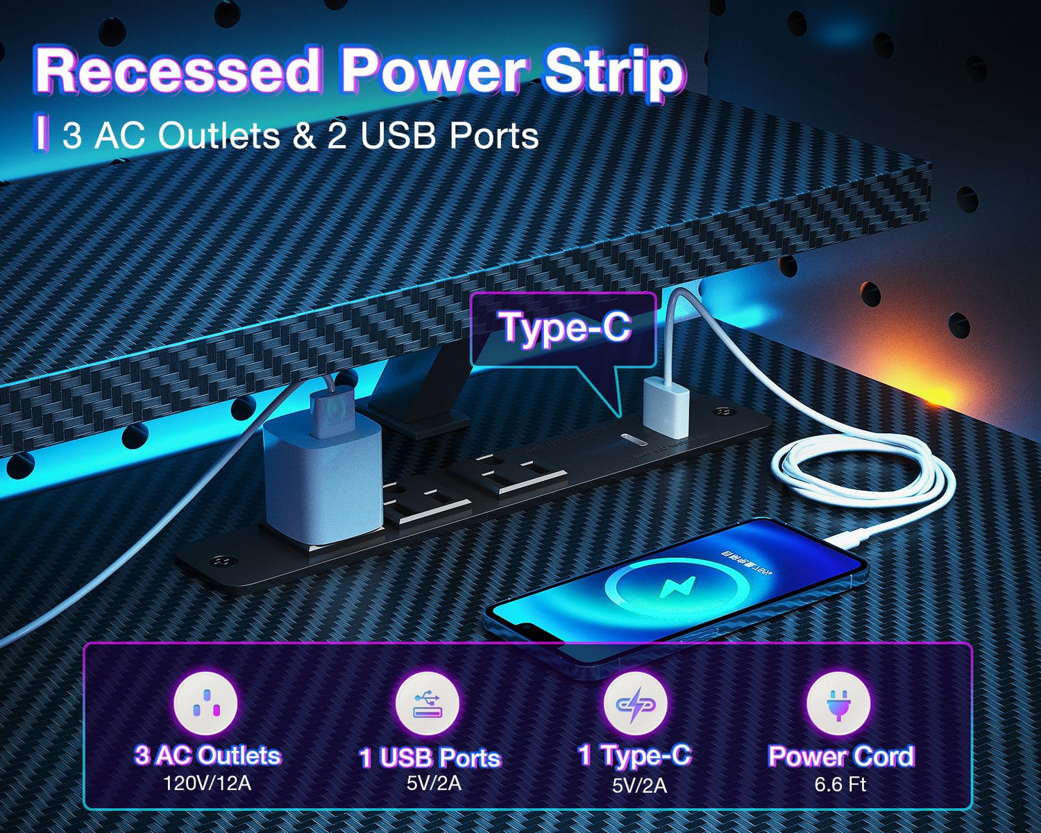 - 【USB Charging Ports & Power Outlets】The office desk is equipped with 3 power outlets and 2 USB charging ports for your electronic devices, you can easily and conveniently charge your smart phone, gaming gear or Bluetooth devices when play computer games or work from home. A versatile hook provides additional storage space for your convenience.