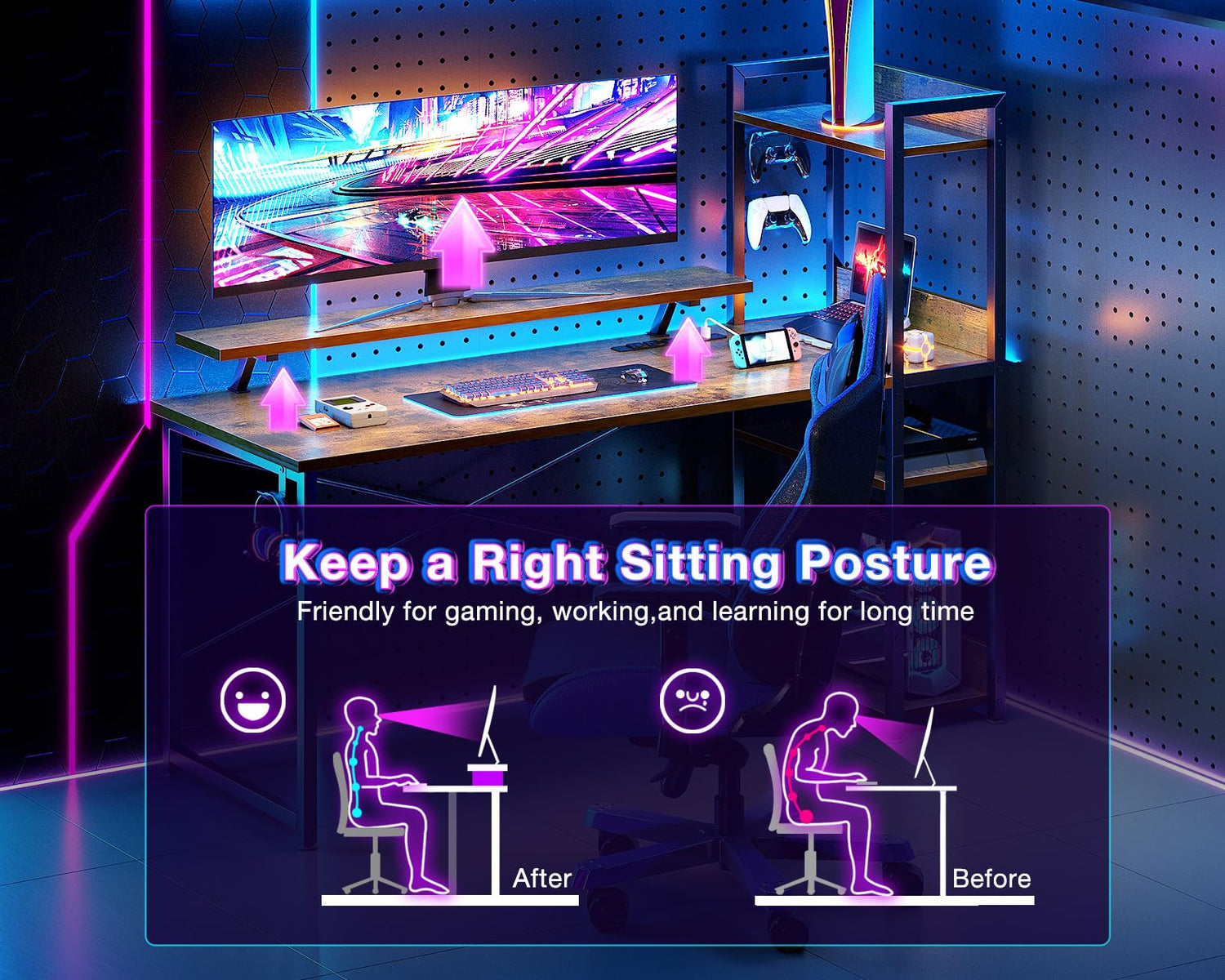 - **Ample Workspace**: The spacious tabletop, measuring 31.5 inches in width and 19.7 inches in depth, coupled with a 27.6-inch monitor stand, gives you the perfect amount of space to spread out your work. The open shelves, measuring 7.9 inches by 18.1 inches, can be installed on either side, accommodating office supplies and computer cases.