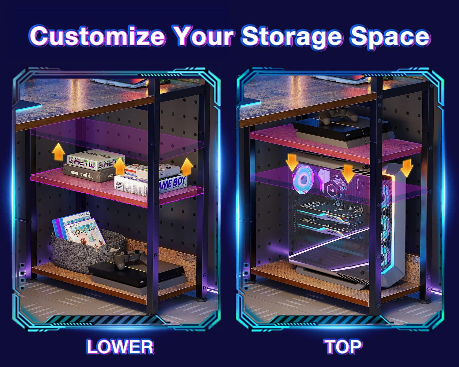 - **Customizable Storage Solutions**: The thoughtful design includes a CPU stand and reversible open shelves, providing versatile storage options. The middle shelf can be adjusted to fit your needs, whether you prefer a two-tier bookshelf or a dedicated CPU stand. Position the shelf to your liking, allowing for easy access to your storage box, books, or music gear.