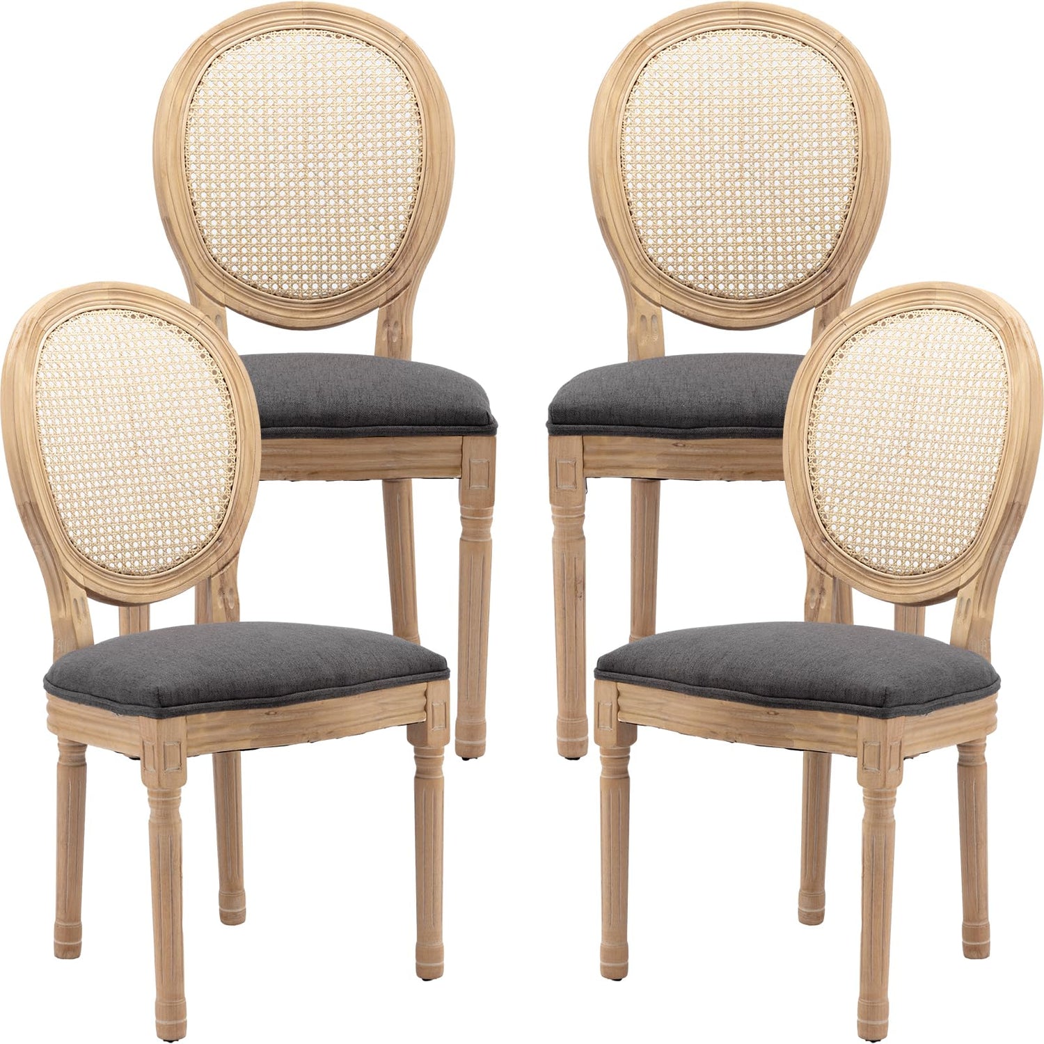 ODUSE-DAILY French Country Dining Chairs Set of 4, Dark Gray Kitchen & Dining Room Chairs Set of 4, Rattan Dining Chairs, Cane Back, Wood Legs, Sillas De Comedor (Rattan,Dark Grey, 4Pcs)
