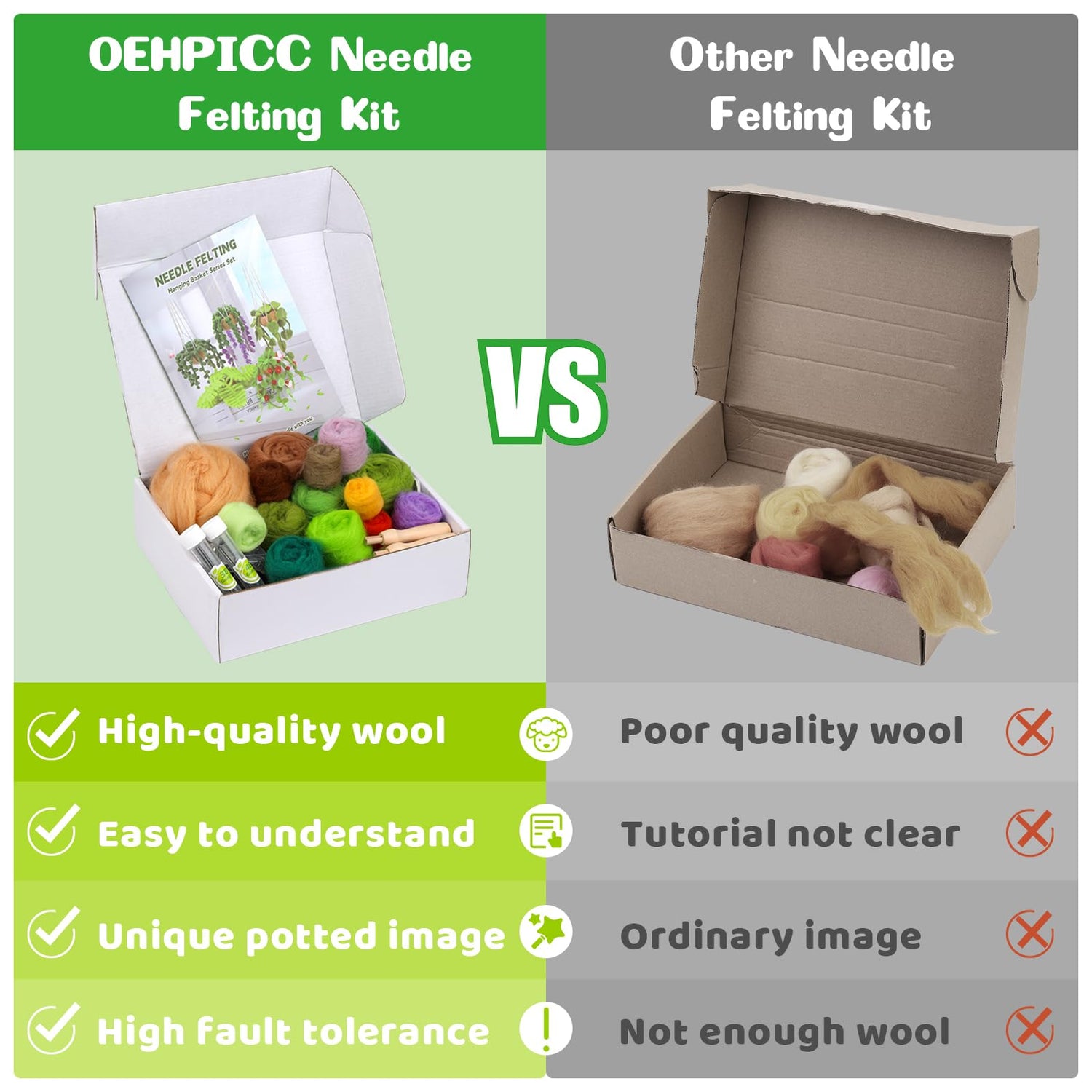 - Elegant and Cute Plant: This felting kits for beginners adult includes 5 hanging basket plants designed to look like real hanging plants, but no watering is required. They are beautiful but never dead plants. You can always feel the freshness of the plants