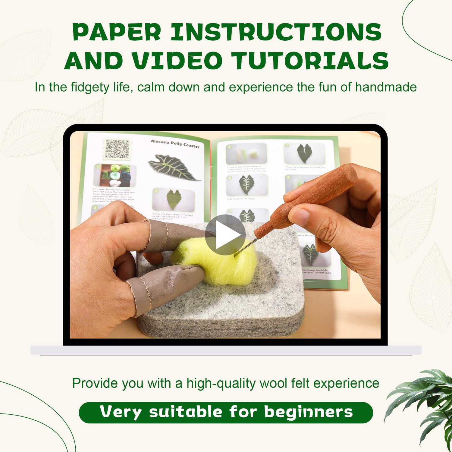 • Plant Leaf Coasters Needle Felting Kit:The needle felting set includes the amount of wool needed for the projects, needle felting pad, instructions, finger cots, wooden felt handle, apricot cloth.We also offer 2 models of felting needles to meet your felting needle needs.All of our accessories are packed in boxes, making them easy to store at any time