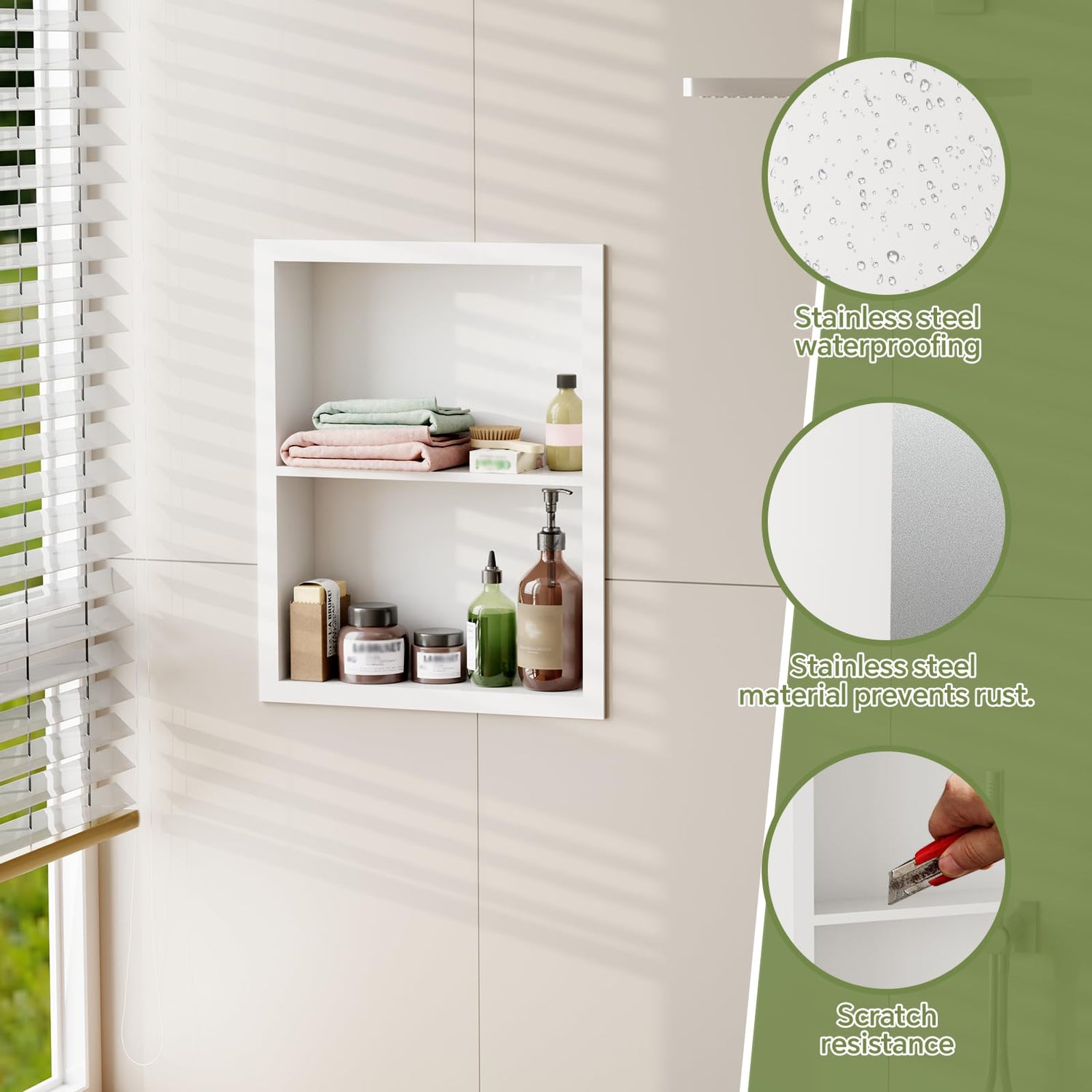 Oenalw 14x18 Medicine Cabinet Recessed Stainless Steel, 2-Tier, Medicine Cabinet Organizer,Stainless Steel Wall Niche, Bathroom Wall Cabinet, Recessed Bathroom Cabinet, Cabinet recessed Wall Cabinet